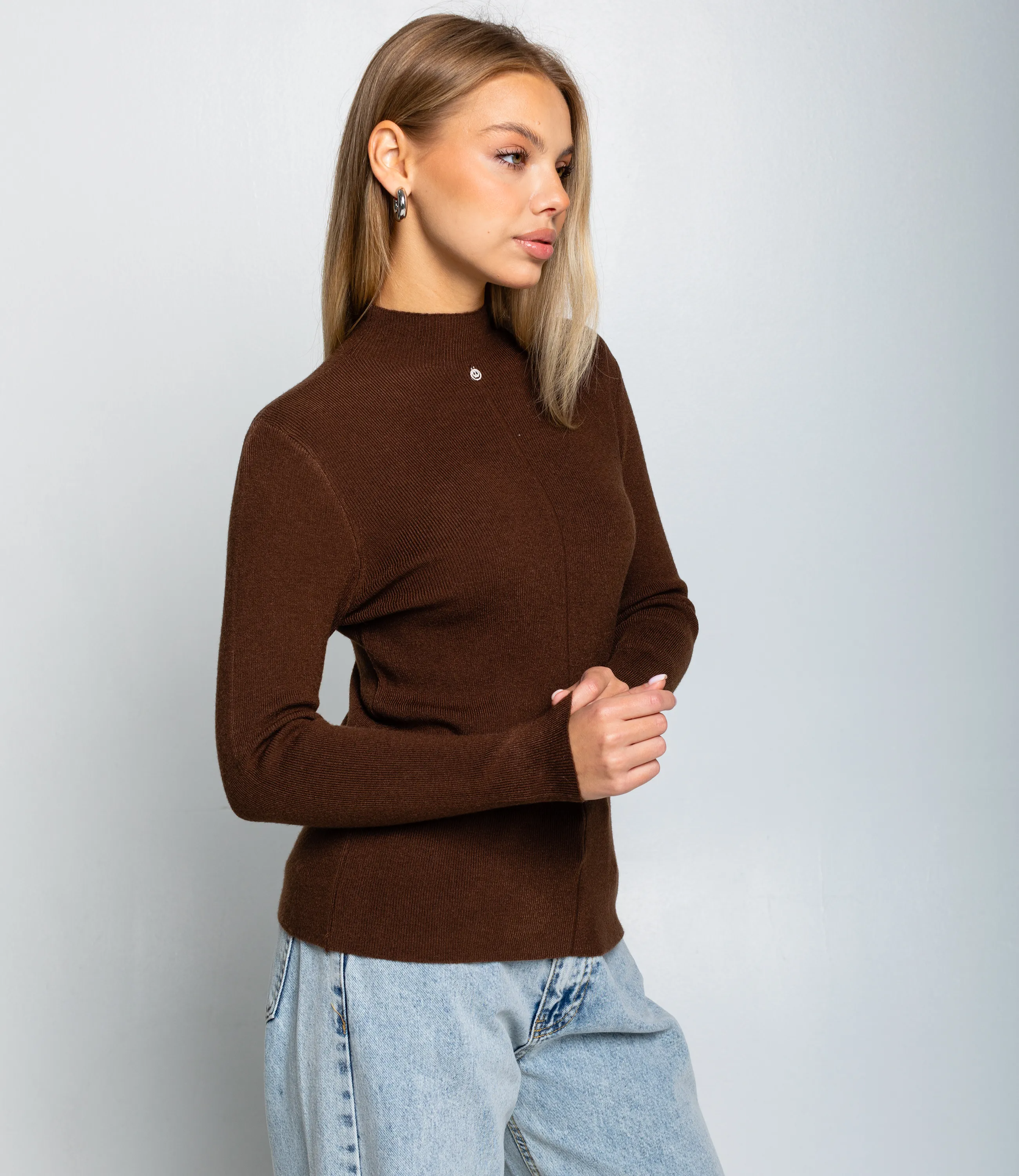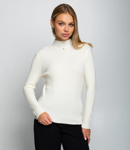 Водолазка — это часть гардероба, которая подчёркивает женственность и утончённость каждой покупательницы. Модель выполнена из гладкого трикотажного материала с тонкой и плотной фактурой; облегающий силуэт, классический высокий воротник и длинные приталенные рукава создают лаконичный и универсальный образ. По центру передней части проходит едва заметный вертикальный шов, добавляющий композиционной строгости и изящества, а небольшая металлическая подвеска‑улыбка со стразами придаёт изделию аккуратную стильную деталь. Водолазка отлично вписывается в базовый гардероб и легко комбинируется с брюками и юбками, а также служит идеальным слоем в многослойных образах. Для пошива использована ткань 65% хлопок, 30% полиэстер, 5% эластан: хлопок обеспечивает комфорт и хорошую воздухопроницаемость, полиэстер повышает прочность и стойкость цвета, эластан гарантирует посадку и сохранение формы после носки и стирок. Материал устойчив к частым стиркам, не деформируется и долго сохраняет презентабельный вид, что снижает количество возвратов и рекламаций. Для оптовых покупателей водолазка является выгодной и оборотистой позицией: базовый дизайн упрощает формирование размерного ряда и уменьшает риск непроданных остатков, а универсальность модели повышает её привлекательность для широкой аудитории. Рост 168, 89-63-90.