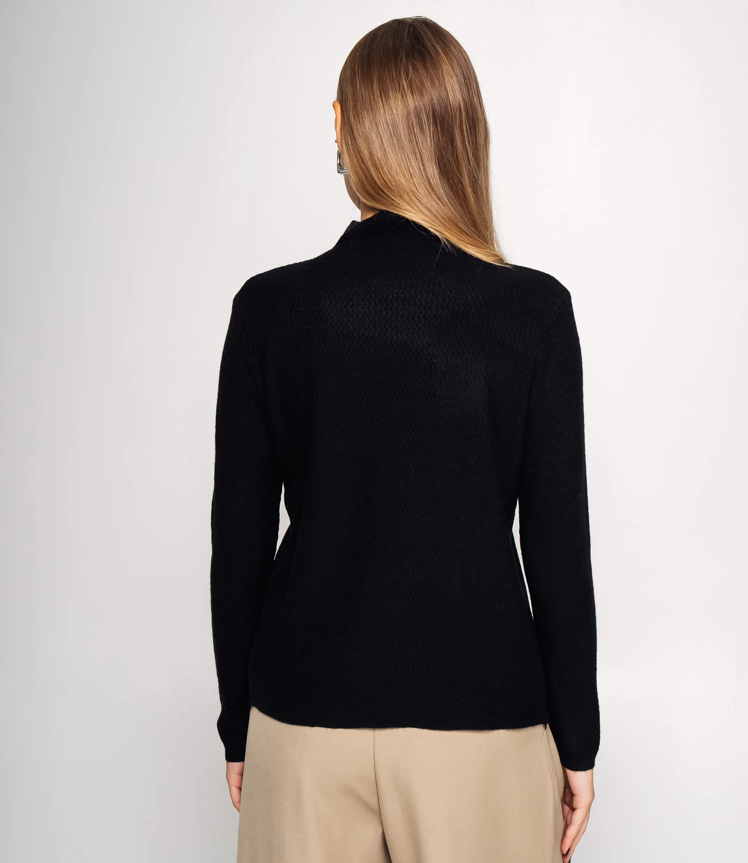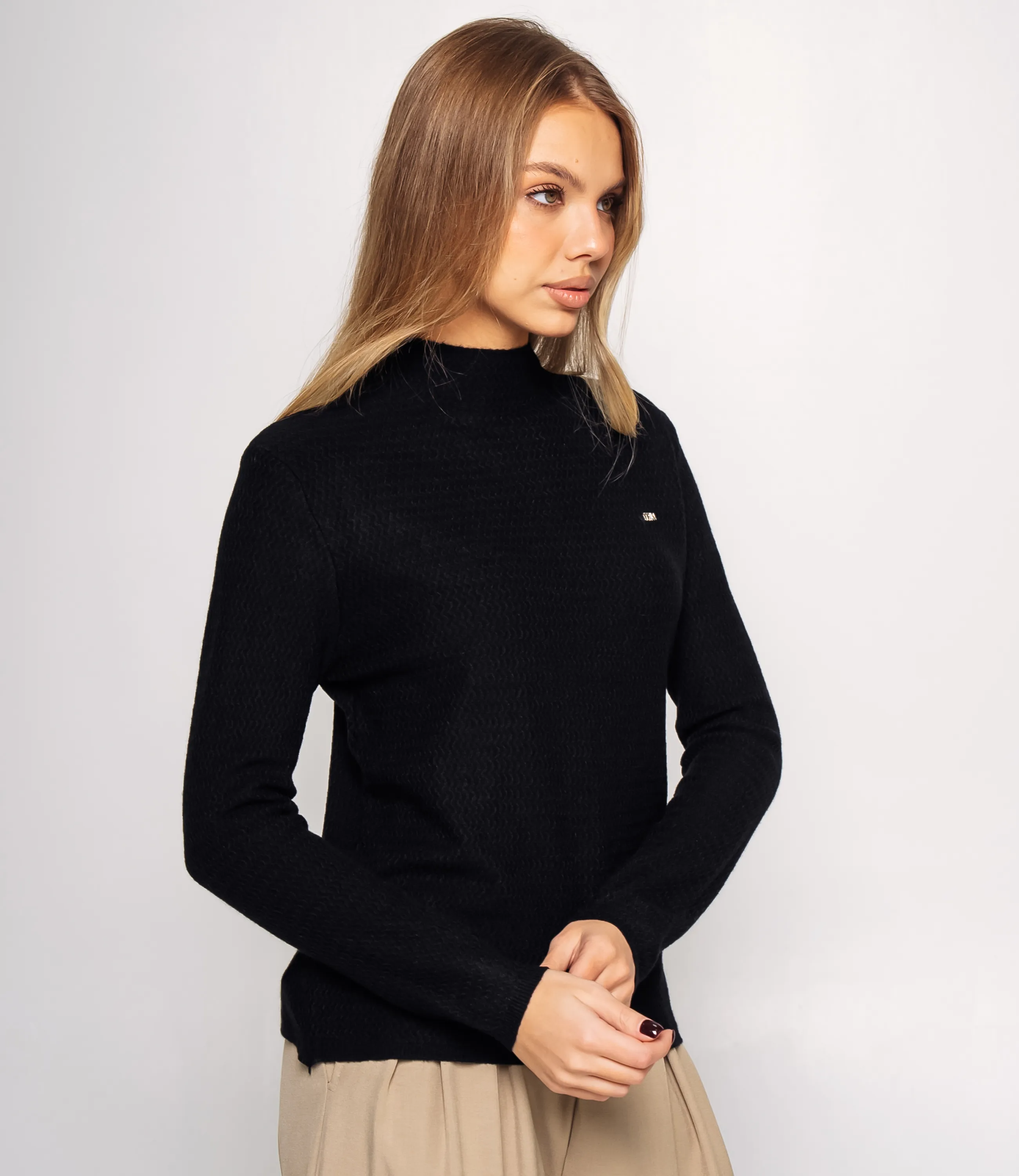 Водолазка — это часть гардероба, которая подчёркивает женственность каждой женщины. Данная модель с длинными рукавами и высоким круглым воротником, плотно облегающим шею, отлично подойдёт для создания базового слоя в прохладную погоду. Фасон приталенный, но не слишком обтягивающий, что обеспечивает комфорт при носке; мелкий рельефный узор добавляет тактильный интерес, а небольшая логотипная деталь у плеча вносит сдержанный акцент в общий вид. Эту модель предпочитают покупательницы, которые ценят сочетание качества и адекватной цены. Производитель знает, как разрабатывать стильные и практичные решения, удобные для массового ассортимента. Для пошива использована ткань: 65% хлопок, 30% полиэстер, 5% эластан. Хлопок обеспечивает приятную на ощупь и дышащую основу, полиэстер повышает стойкость цвета и износостойкость, а эластан добавляет эластичность и хорошее восстановление формы. Изделие сохраняет форму и аккуратный внешний вид после многократных стирок, что снижает долю возвратов и важно для розничных продаж. Цвет и фактура соответствуют фотографии на сайте. На странице представлена таблица размеров, с помощью которой вы сможете грамотно сформировать ассортимент по размерам и цветам. Производитель гарантирует аккуратную отделку швов и стабильность посадки. Предложенные оптовые условия позволяют получить привлекательную маржинальность для магазинов. Рекомендуем включить эту водолазку в ассортимент — она станет востребованным предложением для клиенток, ищущих универсальную и уютную базовую вещь.