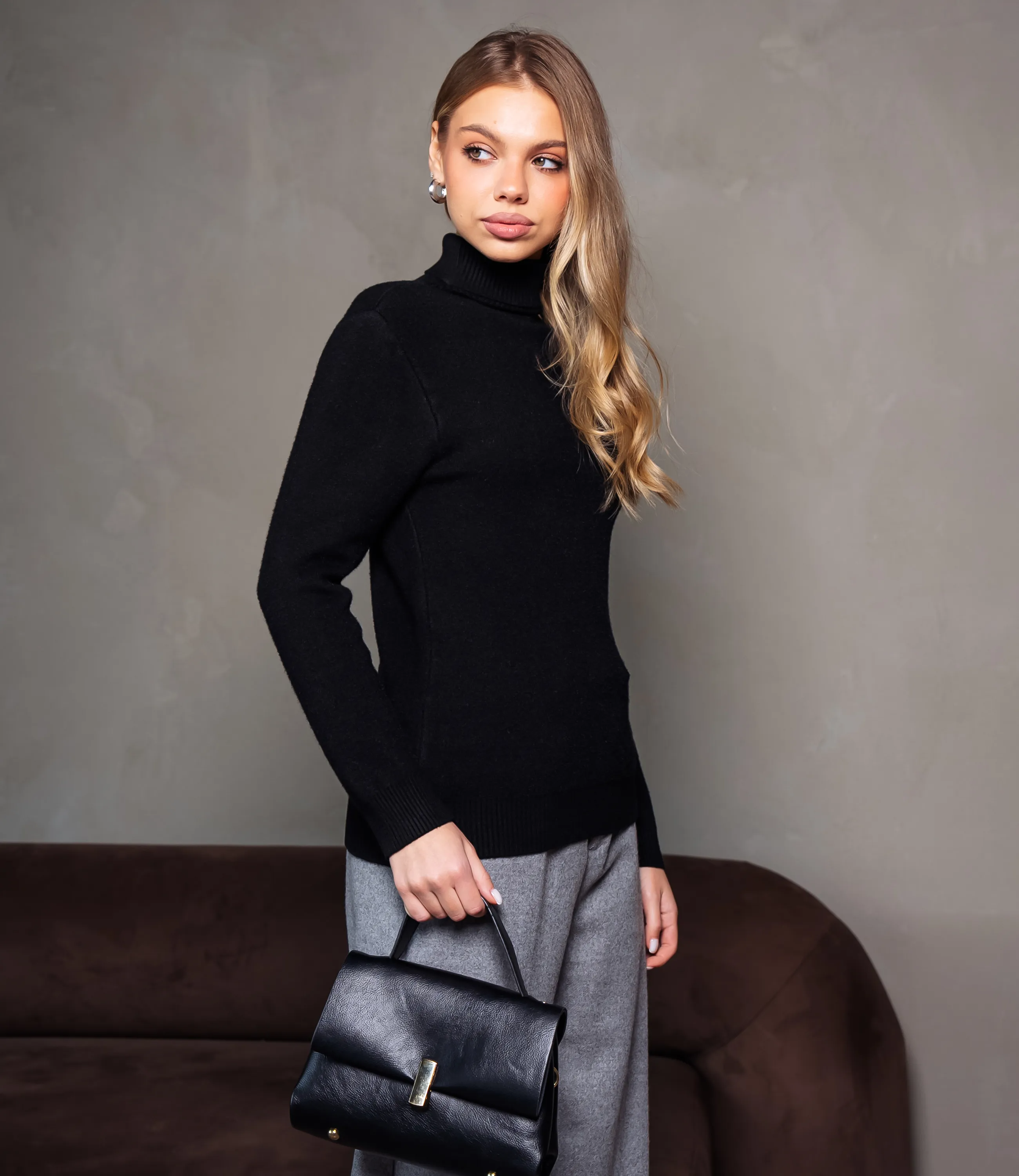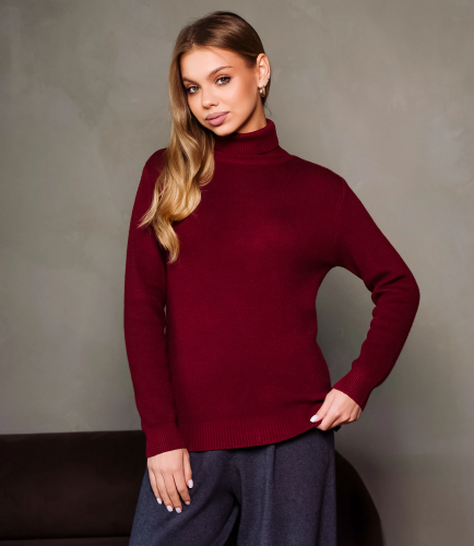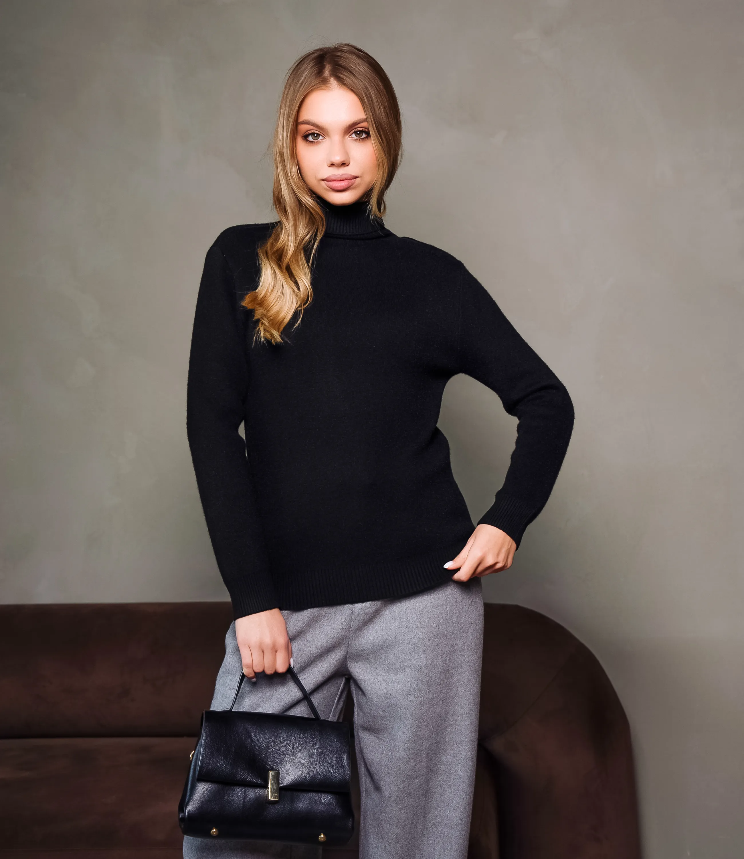 Водолазка — это часть гардероба, которая подчёркивает женственность и утонченность каждой покупательницы. Водолазка с облегающим силуэтом, средней длины; плечи слегка спущены, рукав втачной, ровный по всей длине, обеспечивающий свободу движений и аккуратную линию руки. Ворот средней высоты с плотной резинкой в рубчик, сохраняет форму и мягко облегает шею без сильного сдавливания. Ткань — тонкий эластичный трикотаж с гладкой лицевой стороной и внутренней байкой: короткий равномерный ворс на изнанке обеспечивает дополнительное тепло и тактильный комфорт, не скатывается при аккуратном уходе и не нарушает драпировку; материал дышащий, упругий, возвращается к форме после растяжения. Нижний край и манжеты оформлены широкой резинкой в рубчик для плотной посадки. Для пошива использована ткань 65% хлопок, 35% полиэстер. Такое сочетание обеспечивает комфорт и хорошую воздухопроницаемость хлопка, прочность и стойкость цвета за счёт полиэстера и эластичность посадки благодаря эластану. Материал сохраняет форму и презентабельный вид после многократных стирок, что уменьшает долю возвратов и рекламаций при розничной продаже. Для оптовых покупателей водолазка представляет собой выгодную и оборотистую позицию: базовый дизайн упрощает комплектование размерного ряда и снижает риск нереализованных остатков, а универсальность модели расширяет целевую аудиторию. Рекомендуем включать водолазки в базовые капсулы, формировать наборы ключевых оттенков и готовые комплекты «верх + низ» для повышения среднего чека и ускорения оборачиваемости. Рост 168, 89-63-90.