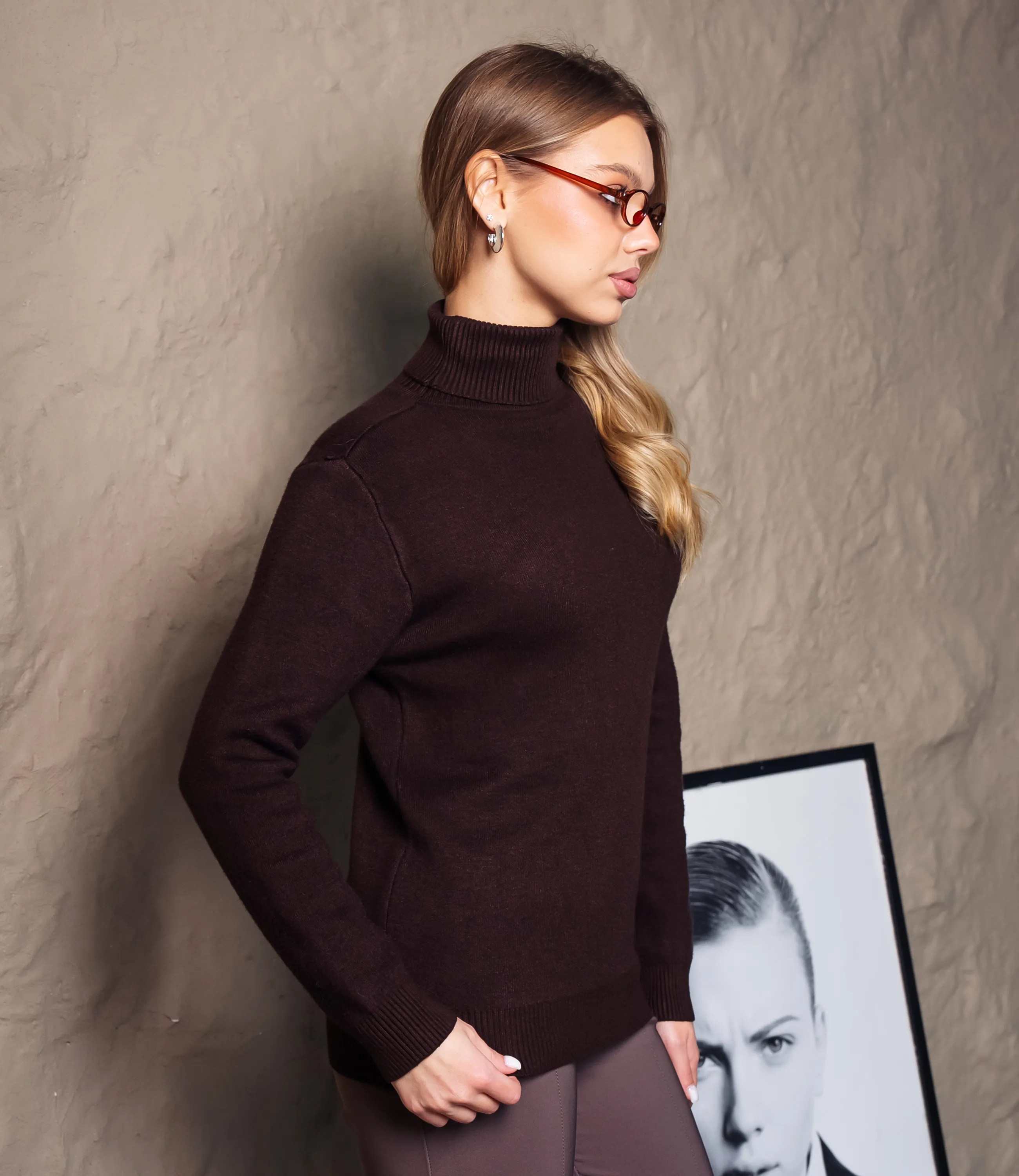 Водолазка — это часть гардероба, которая подчёркивает женственность и утонченность каждой покупательницы. Водолазка с облегающим силуэтом, средней длины; плечи слегка спущены, рукав втачной, ровный по всей длине, обеспечивающий свободу движений и аккуратную линию руки. Ворот средней высоты с плотной резинкой в рубчик, сохраняет форму и мягко облегает шею без сильного сдавливания. Ткань — тонкий эластичный трикотаж с гладкой лицевой стороной и внутренней байкой: короткий равномерный ворс на изнанке обеспечивает дополнительное тепло и тактильный комфорт, не скатывается при аккуратном уходе и не нарушает драпировку; материал дышащий, упругий, возвращается к форме после растяжения. Нижний край и манжеты оформлены широкой резинкой в рубчик для плотной посадки. Для пошива использована ткань 65% хлопок, 35% полиэстер. Такое сочетание обеспечивает комфорт и хорошую воздухопроницаемость хлопка, прочность и стойкость цвета за счёт полиэстера и эластичность посадки благодаря эластану. Материал сохраняет форму и презентабельный вид после многократных стирок, что уменьшает долю возвратов и рекламаций при розничной продаже. Для оптовых покупателей водолазка представляет собой выгодную и оборотистую позицию: базовый дизайн упрощает комплектование размерного ряда и снижает риск нереализованных остатков, а универсальность модели расширяет целевую аудиторию. Рекомендуем включать водолазки в базовые капсулы, формировать наборы ключевых оттенков и готовые комплекты «верх + низ» для повышения среднего чека и ускорения оборачиваемости. Рост 168, 89-63-90.