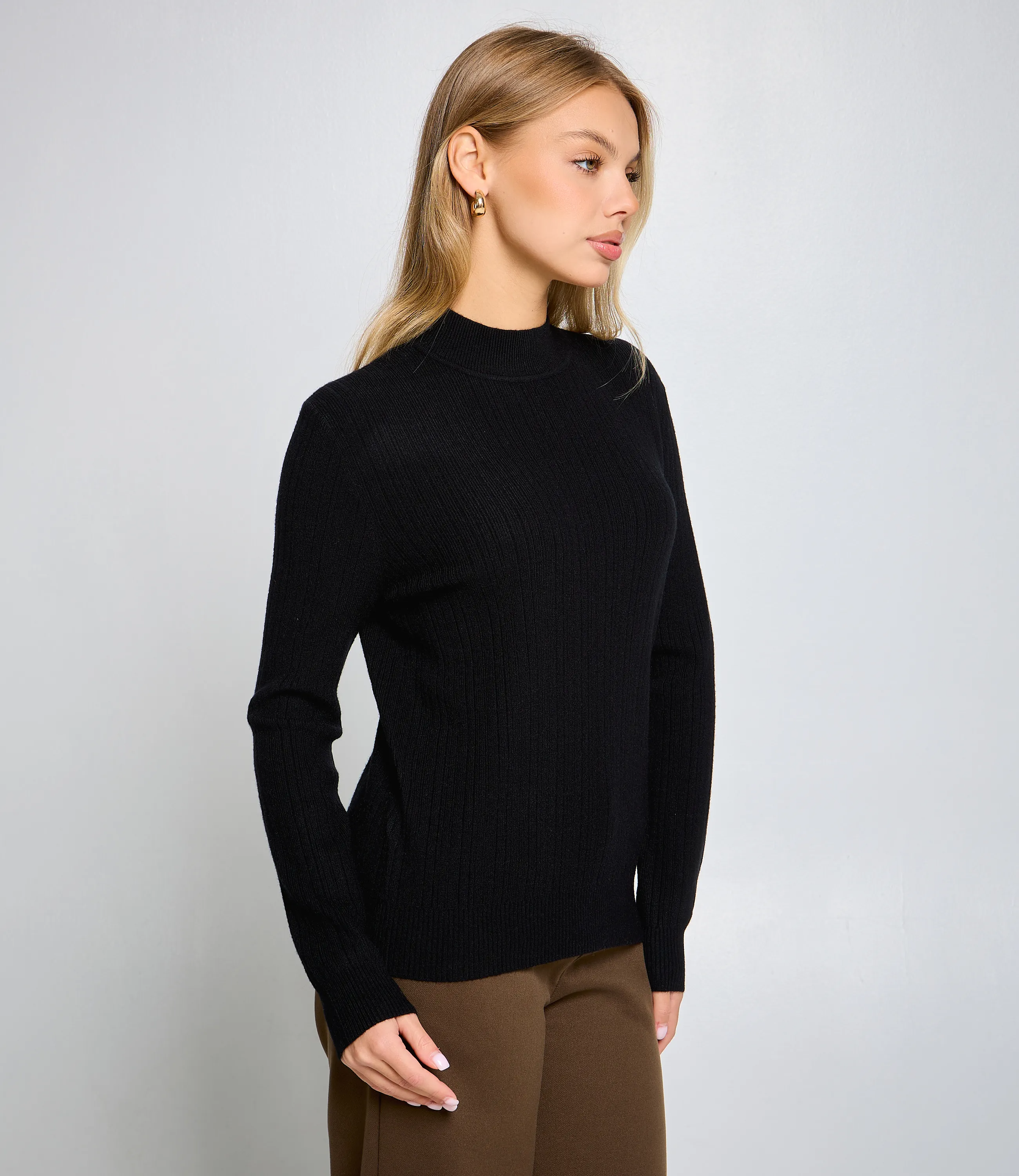 Водолазка — это часть гардероба, которая подчёркивает женственность и утонченность каждой покупательницы. Прямой облегающий крой до бедер из мягкого тонкого трикотажа с тонкой вертикальной рельефной фактурой; высокая плотная горловина‑стойка, облегающие длинные рукава с узкими манжетами и плотный резиновый пояс для аккуратной посадки. Для пошива использована ткань 65% хлопок, 30% полиэстер, 5% эластан. Такое сочетание обеспечивает комфорт и хорошую воздухопроницаемость хлопка, прочность и стойкость цвета за счёт полиэстера и эластичность посадки благодаря эластану. Материал сохраняет форму и презентабельный вид после многократных стирок, что уменьшает долю возвратов и рекламаций при розничной продаже. Для оптовых покупателей водолазка представляет собой выгодную и оборотистую позицию: базовый дизайн упрощает комплектование размерного ряда и снижает риск нереализованных остатков, а универсальность модели расширяет целевую аудиторию. Рекомендуем включать водолазки в базовые капсулы, формировать наборы ключевых оттенков и готовые комплекты «верх + низ» для повышения среднего чека и ускорения оборачиваемости. Рост 168, 89-63-90.