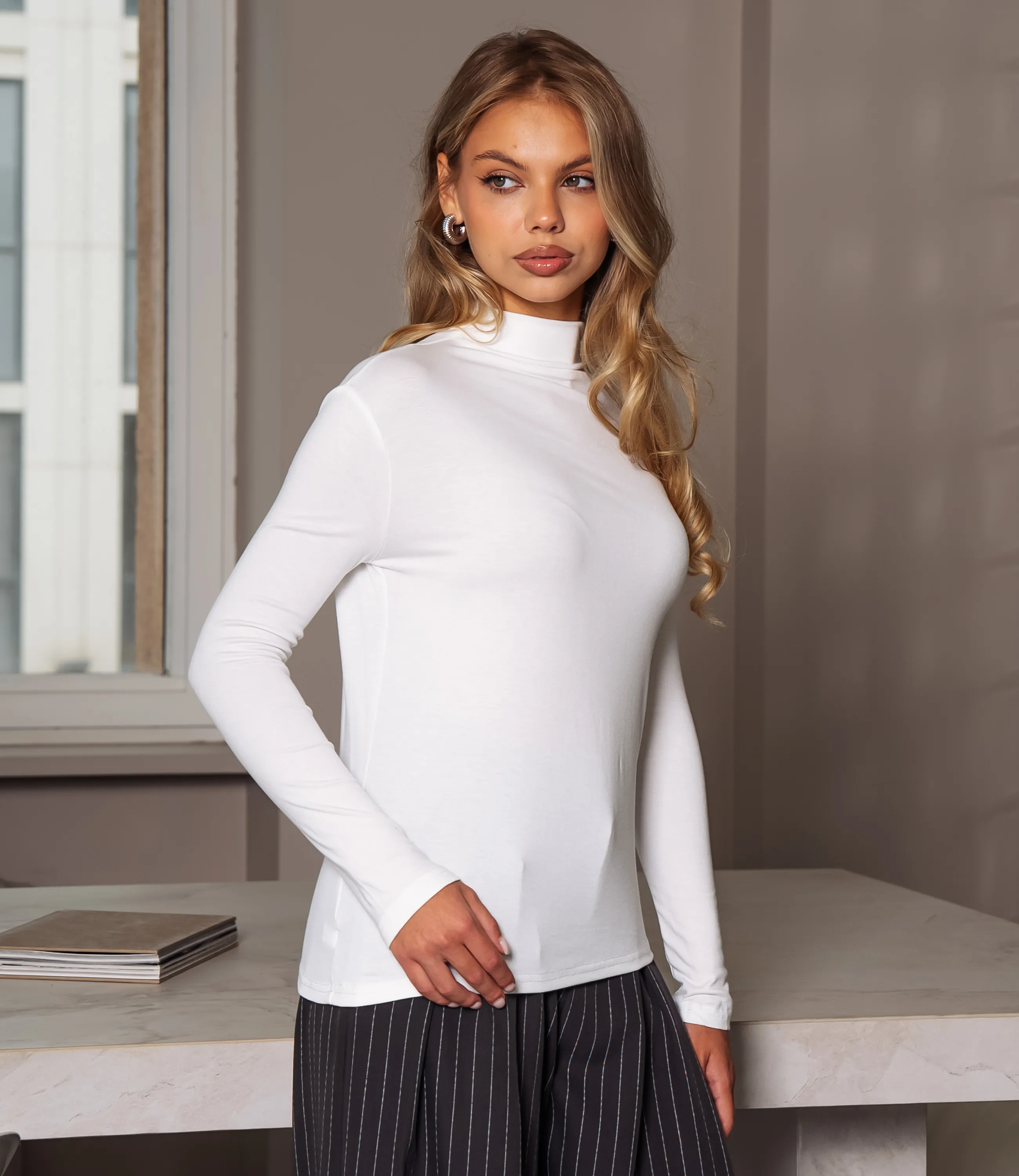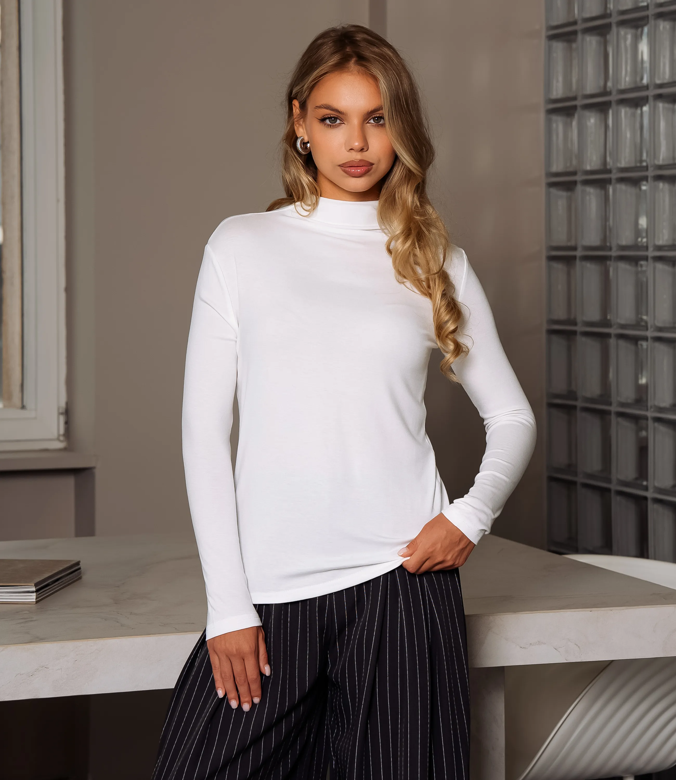 Водолазка – это одежда, которая подчеркивает женственность любой представительницы прекрасного пола. Данная модель водолазки отлично подойдет для демисезонного периода. Водолазка приталенного силуэта. Горловина высокая и облегающая, плотно обхватывает шею, выполнена без отворотов и лишних складок; кромка горловины аккуратно обработана швом, сохраняет форму при носке. Для изготовления использована ткань, состоящая из 65% полиэстера, 30% хлопка и 5% эластана, которая характеризуется отличным качеством. Даже после большого количества стирок изделие не утратит первоначальной красоты. Вы сможете носить ее с радостью. Обратите внимание на цвет. Он является насыщенным и полностью соответствует фотографии на сайте. Чтобы вы были уверены в размере, мы представили на странице таблицу. Воспользовавшись ею, вы сможете сами обмерить себя и удостовериться. Установленная нами цена является приемлемой. Не откажите себе в удовольствии быть элегантной! Рост модели 168 см., 89-63-90.