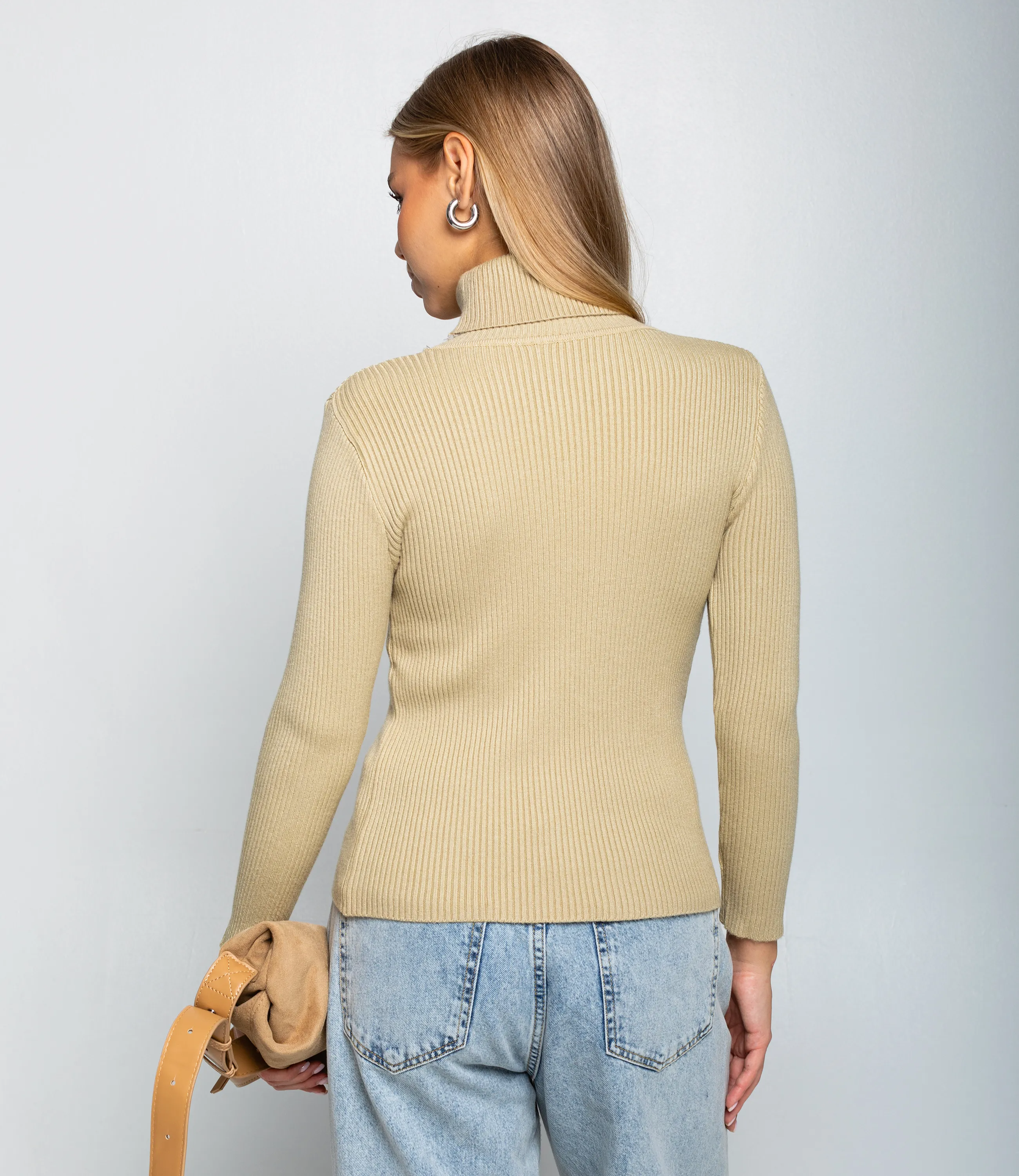 Водолазка — это часть гардероба, которая подчёркивает женственность и утонченность каждой покупательницы. Модель выполнена из тонкого трикотажного полотна с выраженной рубчатой структурой; высокий воротник плотно обхватывает шею, узкий слегка приталенный силуэт и длинные облегающие рукава создают элегантный и лаконичный образ. Край изделия ровный, без лишних декоров и вытачек, что делает водолазку универсальной для повседневных и более строгих комплектов, легко сочетаемой с брюками и юбками. Для пошива использована ткань 65% хлопок, 30% полиэстер, 5% эластан. Такое сочетание обеспечивает комфорт и хорошую воздухопроницаемость хлопка, прочность и стойкость цвета за счёт полиэстера и эластичность посадки благодаря эластану. Материал сохраняет форму и презентабельный вид после многократных стирок, что уменьшает долю возвратов и рекламаций при розничной продаже. Для оптовых покупателей водолазка представляет собой выгодную и оборотистую позицию: базовый дизайн упрощает комплектование размерного ряда и снижает риск нереализованных остатков, а универсальность модели расширяет целевую аудиторию. Рекомендуем включать водолазки в базовые капсулы, формировать наборы ключевых оттенков и готовые комплекты «верх + низ» для повышения среднего чека и ускорения оборачиваемости. Рост 168, 89-63-90.