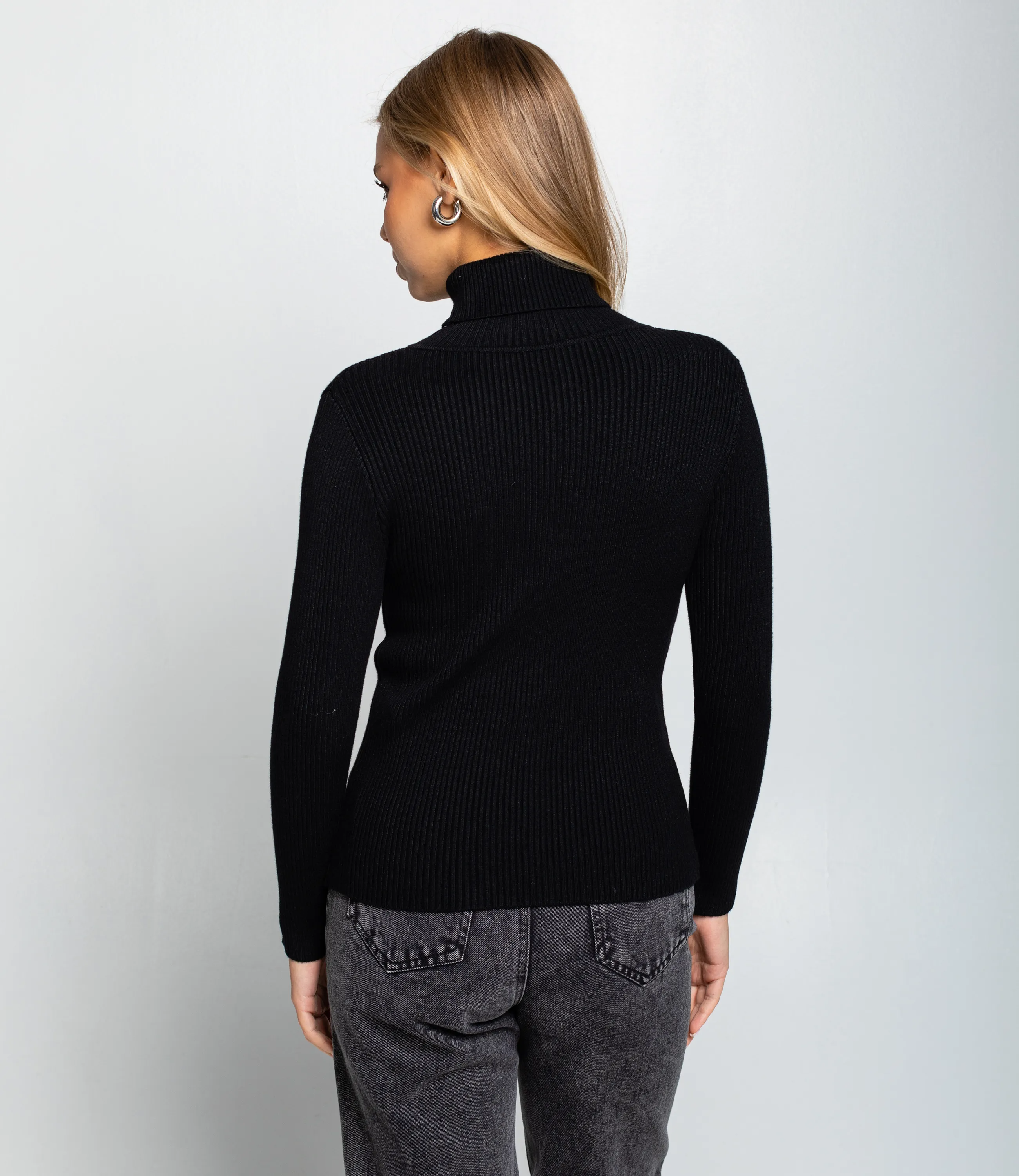 Водолазка — это часть гардероба, которая подчёркивает женственность и утонченность каждой покупательницы. Модель выполнена из тонкого трикотажного полотна с выраженной рубчатой структурой; высокий воротник плотно обхватывает шею, узкий слегка приталенный силуэт и длинные облегающие рукава создают элегантный и лаконичный образ. Край изделия ровный, без лишних декоров и вытачек, что делает водолазку универсальной для повседневных и более строгих комплектов, легко сочетаемой с брюками и юбками. Для пошива использована ткань 65% хлопок, 30% полиэстер, 5% эластан. Такое сочетание обеспечивает комфорт и хорошую воздухопроницаемость хлопка, прочность и стойкость цвета за счёт полиэстера и эластичность посадки благодаря эластану. Материал сохраняет форму и презентабельный вид после многократных стирок, что уменьшает долю возвратов и рекламаций при розничной продаже. Для оптовых покупателей водолазка представляет собой выгодную и оборотистую позицию: базовый дизайн упрощает комплектование размерного ряда и снижает риск нереализованных остатков, а универсальность модели расширяет целевую аудиторию. Рекомендуем включать водолазки в базовые капсулы, формировать наборы ключевых оттенков и готовые комплекты «верх + низ» для повышения среднего чека и ускорения оборачиваемости. Рост 168, 89-63-90.