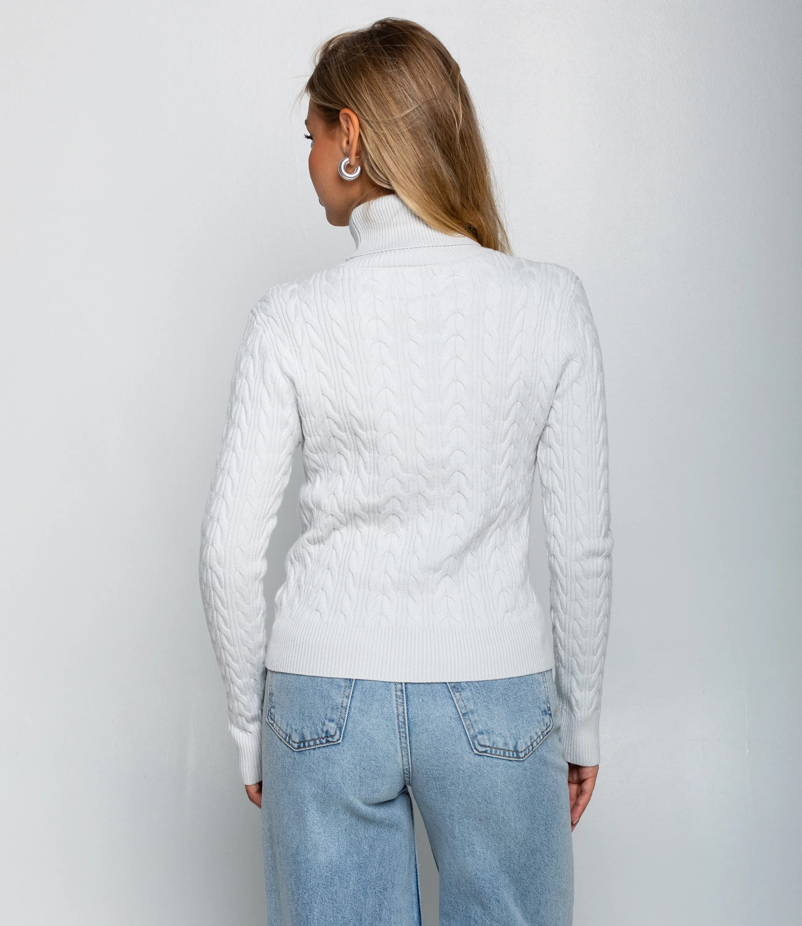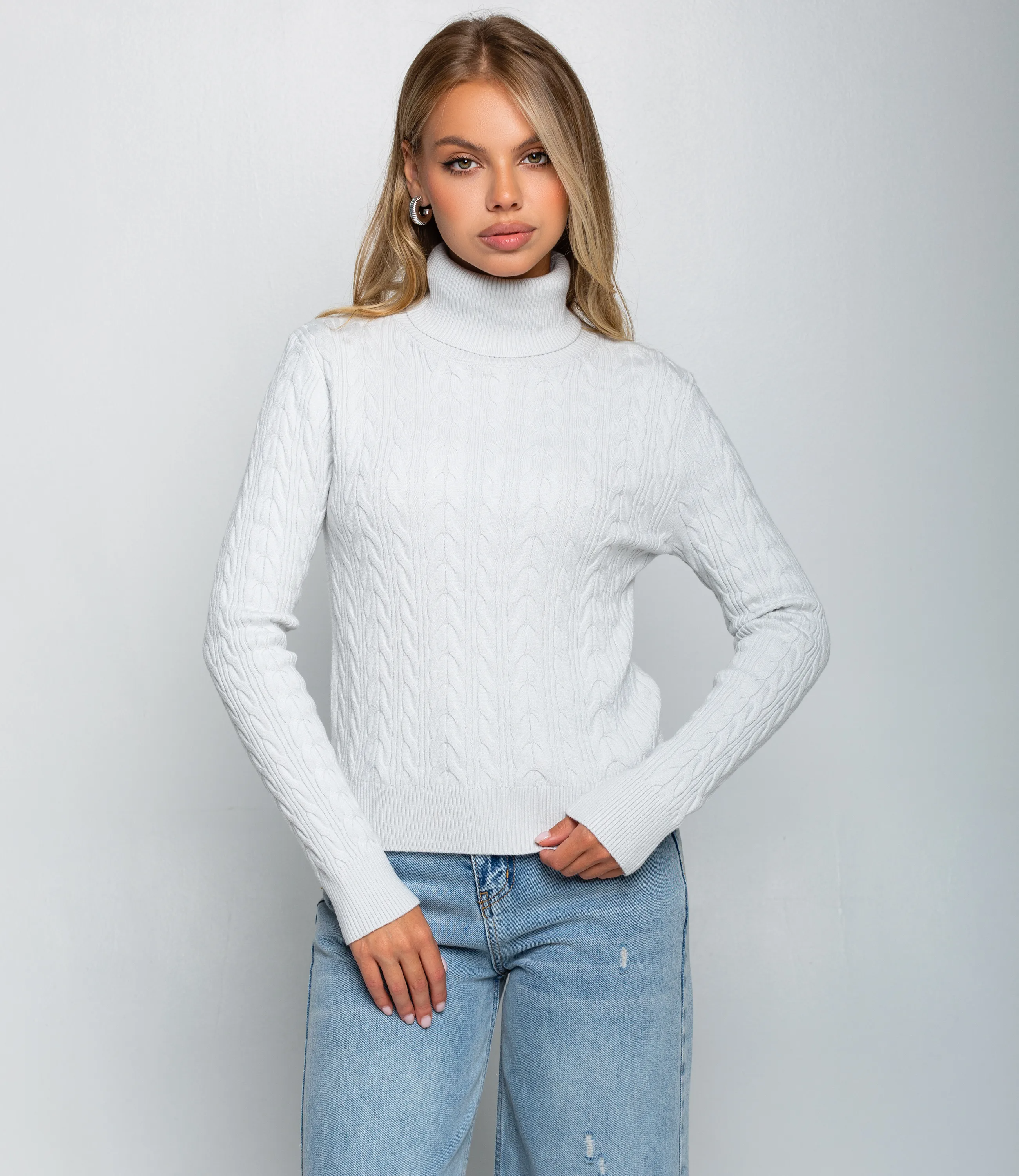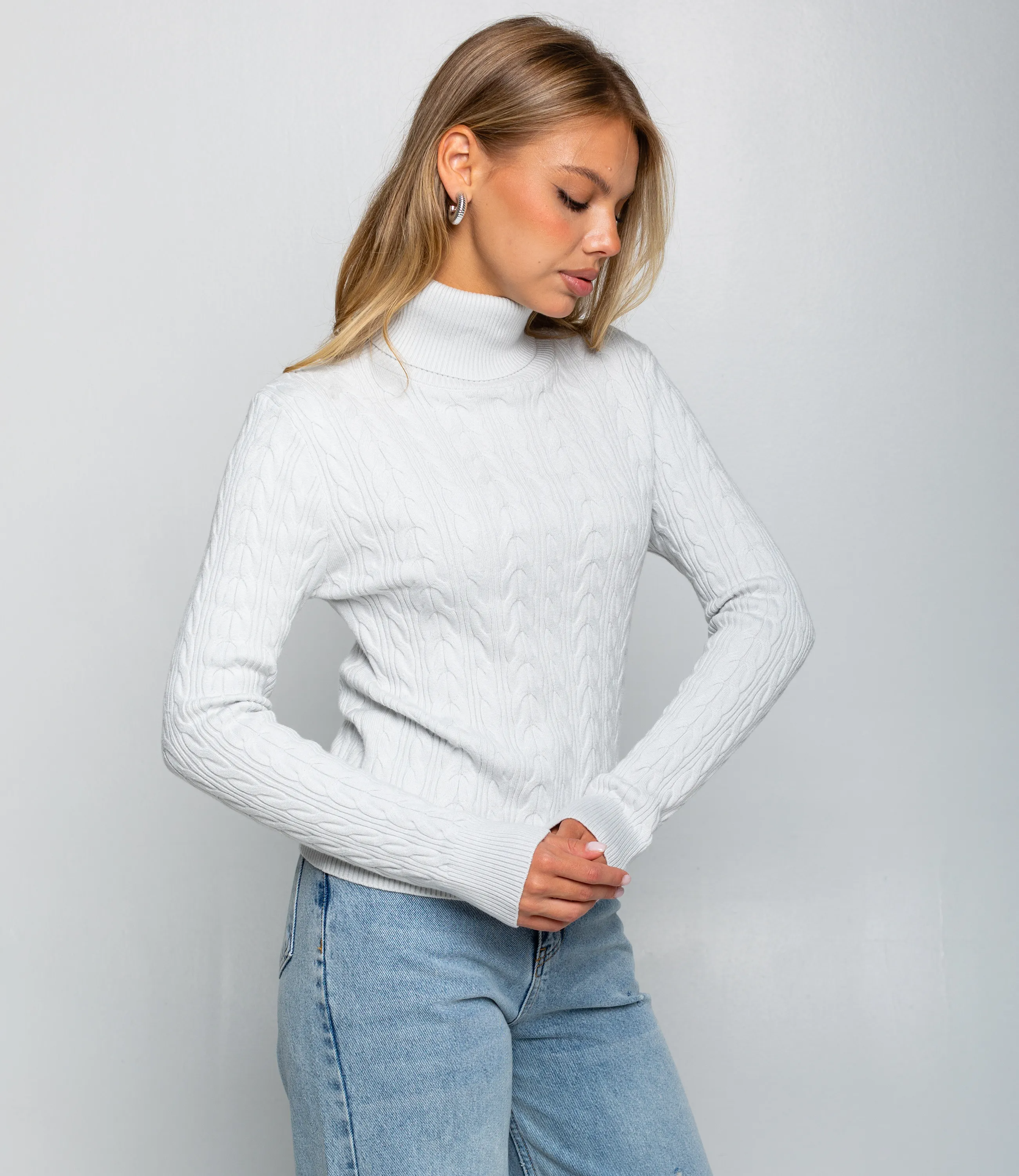 Водолазка – это одежда, которая подчеркивает женственность любой представительницы прекрасного пола. Водолазка приталенного силуэта средней длины до линии бедер, выполнена из средне‑плотного вязаного трикотажа с выраженным плетёным «косичка» узором по всему полотну, имеет высокую подгибную стойку, плотно облегающую шею, длинные прилегающие рукава с широкой вязаной резинкой на манжетах и широкую вязаную планку по низу для сохранения формы. Для изготовления использована ткань, состоящая из 90% акрила и 10% шерсти, которая характеризуется отличным качеством. Даже после большого количества стирок изделие не утратит первоначальной красоты. Вы сможете носить ее с радостью. Обратите внимание на цвет. Он является насыщенным и полностью соответствует фотографии на сайте. Чтобы вы были уверены в размере, мы представили на странице таблицу. Воспользовавшись ею, вы сможете сами обмерить себя и удостовериться. Установленная нами цена является приемлемой. Не откажите себе в удовольствии быть элегантной! Рост модели 168 см., 89-63-90.
