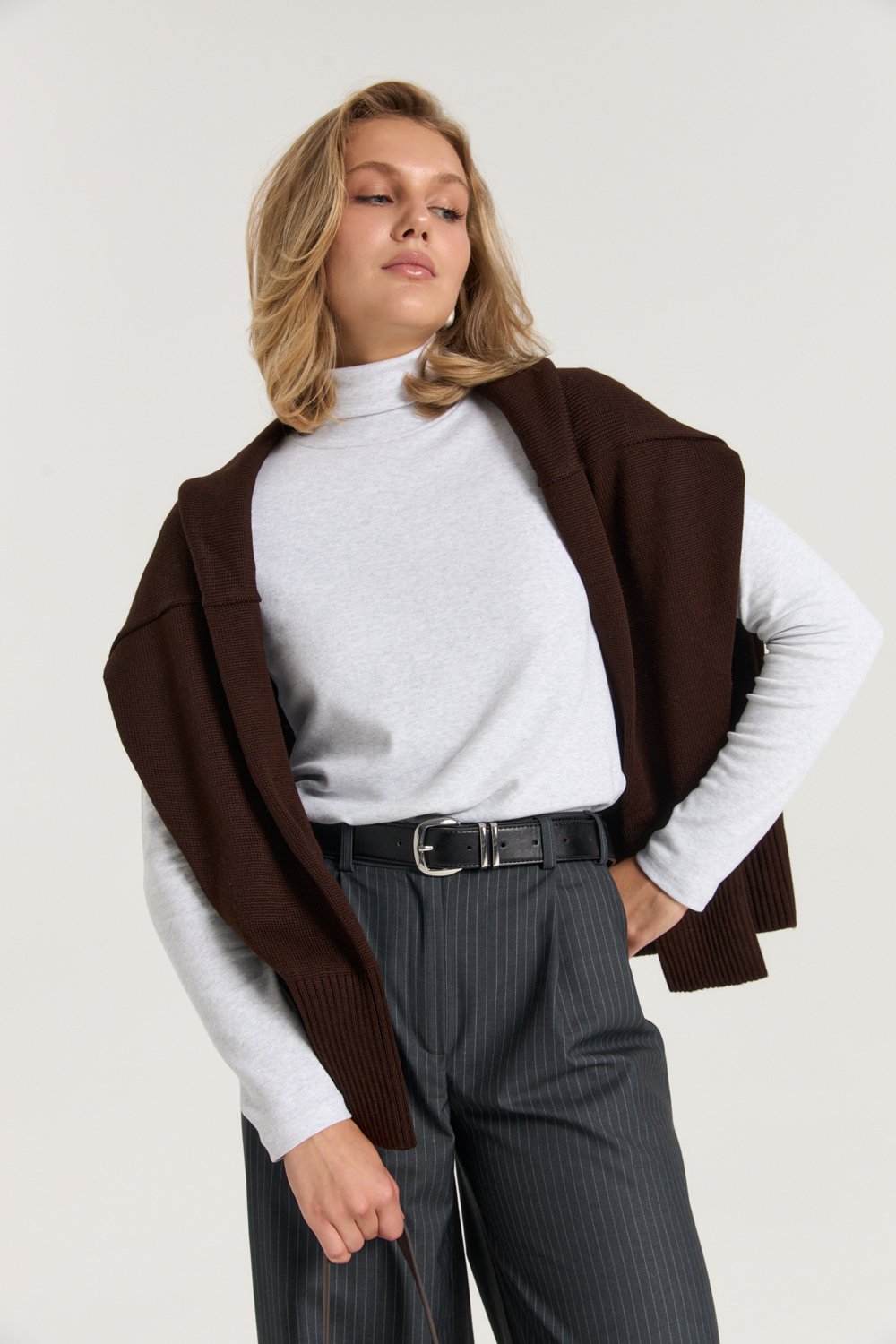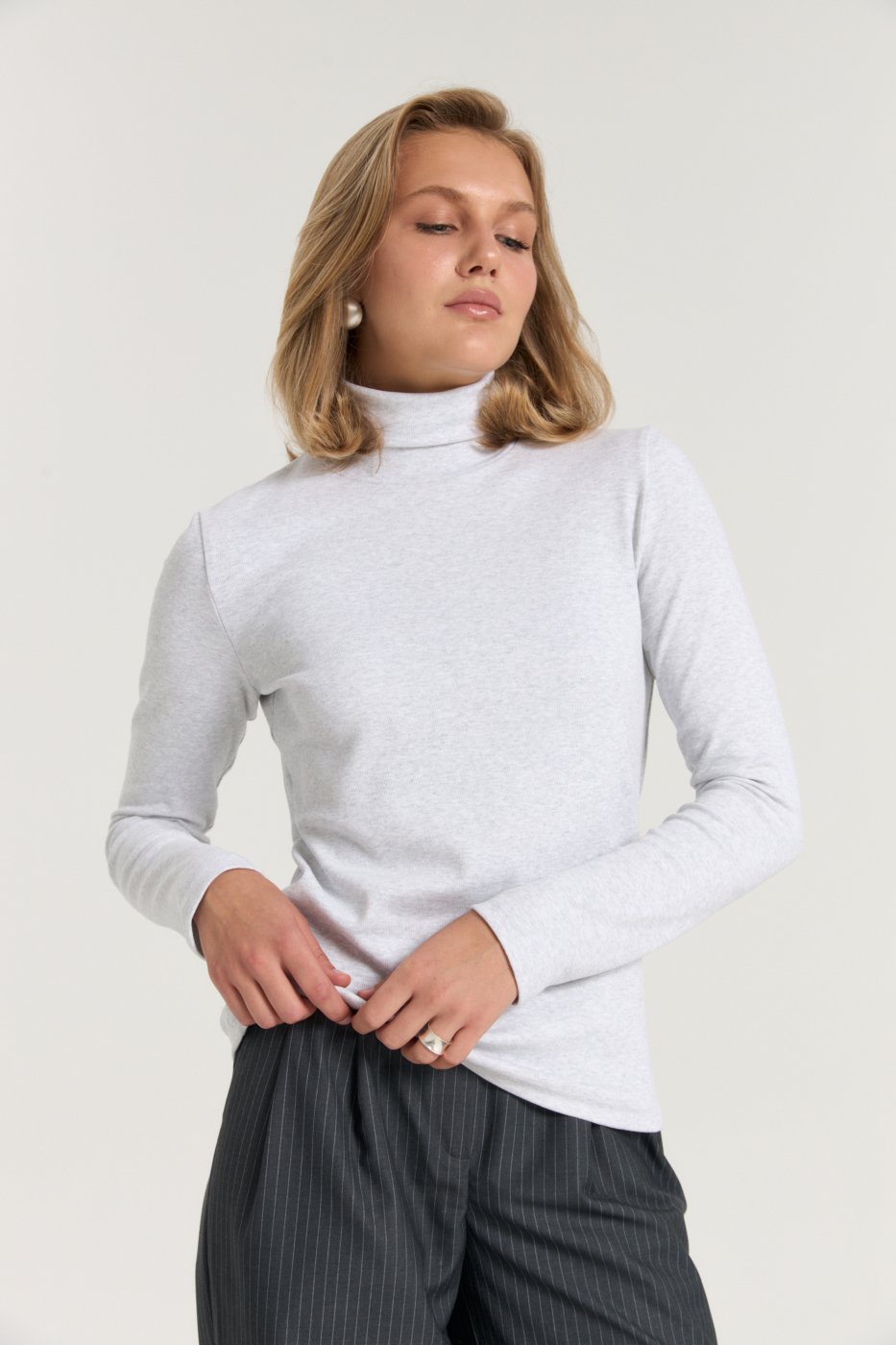 Водолазка умеренного объема. Высокий воротник с подворотом
