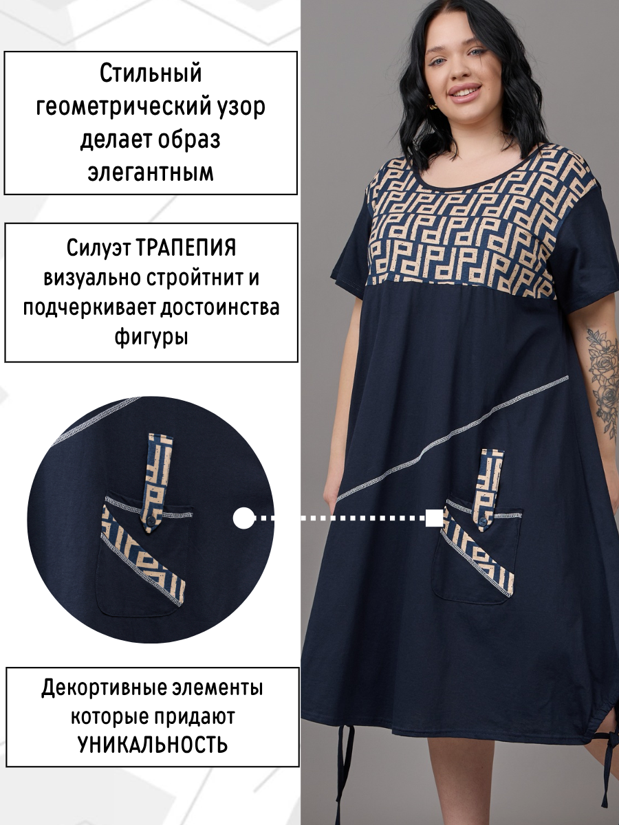 Представляем вам уютное домашнее платье больших размеров созданное для комфорта и стиля в каждый день. Это хлопковое платье свободного кроя с расклешенной юбкой миди идеально подойдет для женщин plus size, обеспечивая свободу движений и ощущение легкости. Черный цвет с классическим рисунком гусиная лапка придает ему элегантный вид, а округлый вырез горловины и рукава 3/4 добавляют женственности. Наличие накладных карманов - практичный бонус для хранения мелочей. Свободный покрой и мягкий ивановский трикотаж из 100% хлопка подарят вам максимальный комфорт в течение дня. Это платье станет незаменимым спутником для отдыха дома, создавая атмосферу уюта и расслабленности. Цвет: ; Материал: кулирка; Состав: Хлопок 100%.
