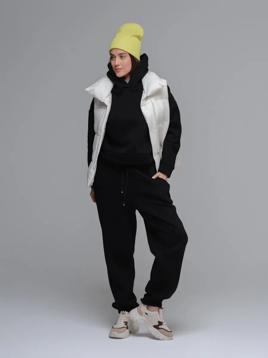 Утепленные брюки выполнены из хлопкового футера с начёсом. для активных девушек, ежедневно предпочитающих комфорт и стиль. Широкие теплые штаны выполнены из качественного трикотажа и имеют удобный крой оверсайз, значительно облегчающий движение во время движения, прогулки или тренировок на свежем воздухе. Они незаменимы как для занятий спортом, так и для повседневной носки или активного отдыха на природе. Свободные джоггеры с начесом сочетают в себе функциональность и модный дизайн. Мягкая резинка на поясе обеспечивает надежную посадку на талии. Практичный шнурок надежно фиксирует талию и обеспечивает регулировку по ширине пояса. х/б - 70 %; ПЭ - 30 %