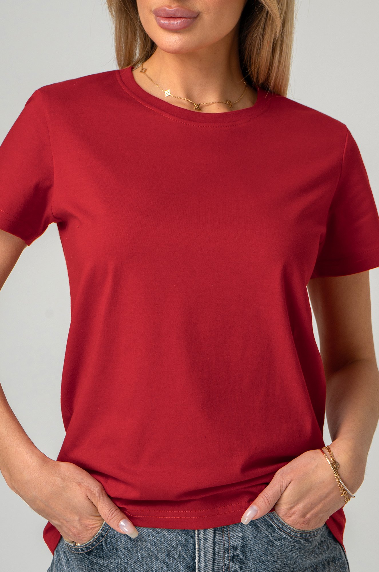 Базовая женская футболка станет незаменимой частью гардероба каждой женщины. Классическая футболка выполнена из 100% хлопка. Однотонная яркая красная футболка — идеальный выбор для тех, кто ценит стиль, комфорт и простоту в каждой детали.