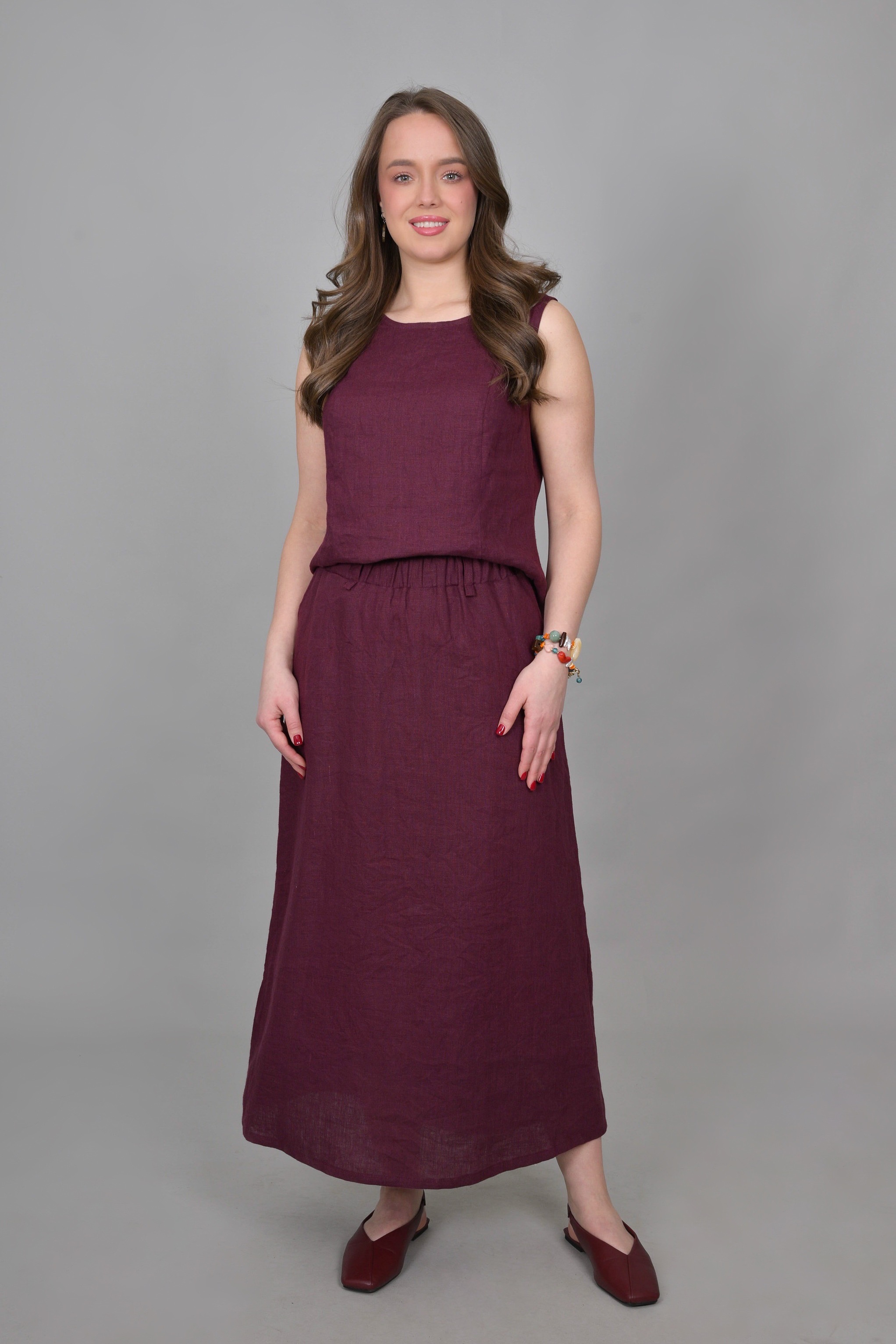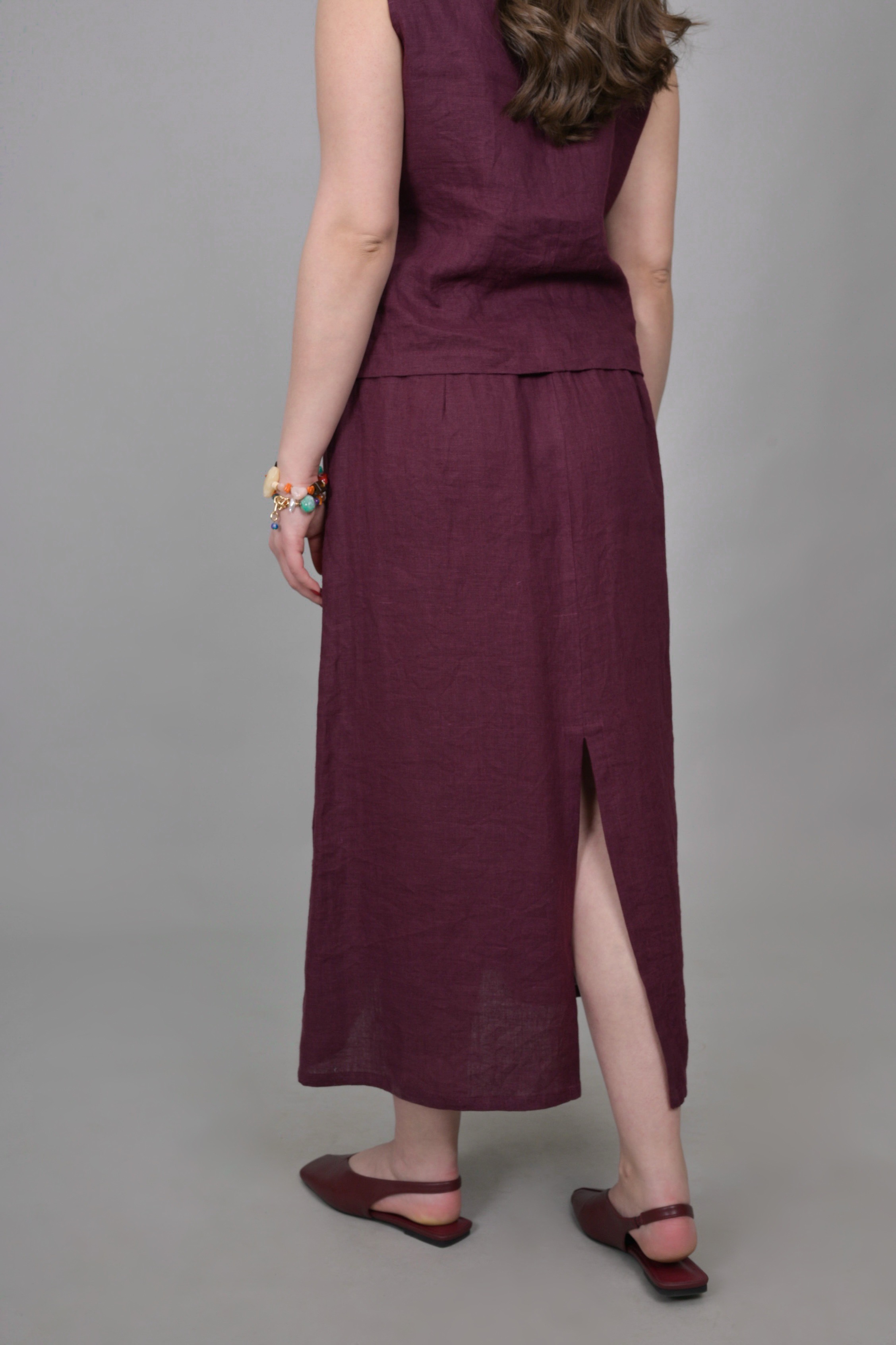 Длинная льняная юбка - идеальный выбор для лета. Изготовлена из 100%го льна, широкая, она обеспечивает комфорт в жаркие дни. Ее стильная трапециевидная форма создает красивый силуэт, подчеркивая женственность. Подойдет для пляжа, в отпуск, на море, в путешествие, для дома, в офис. Есть удобные вместительные карманы, резинка в поясе обеспечит комфортную посадку, а разрез на спинке не будет стеснять движений.