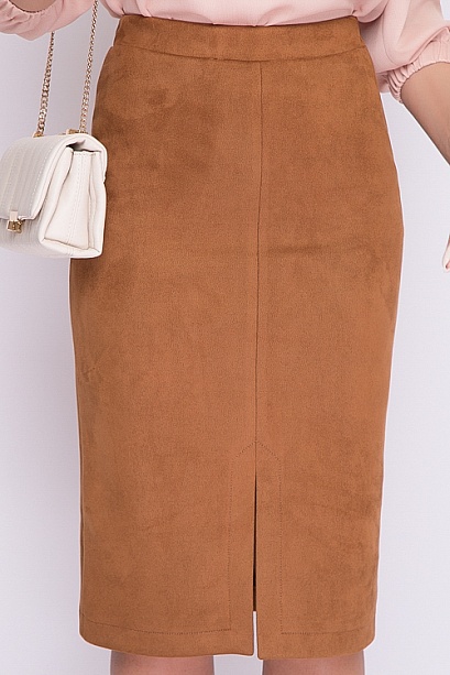 Юбка из искусственной замши,по переду разрез.Пояс на резине.