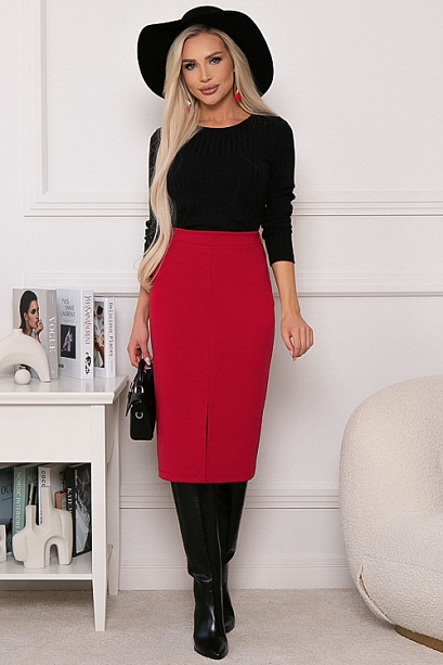 Юбка карандаш из плотного трикотажного полотна джерси на притачном поясе с эластичной  резиной.В среднем шве переда разрез.