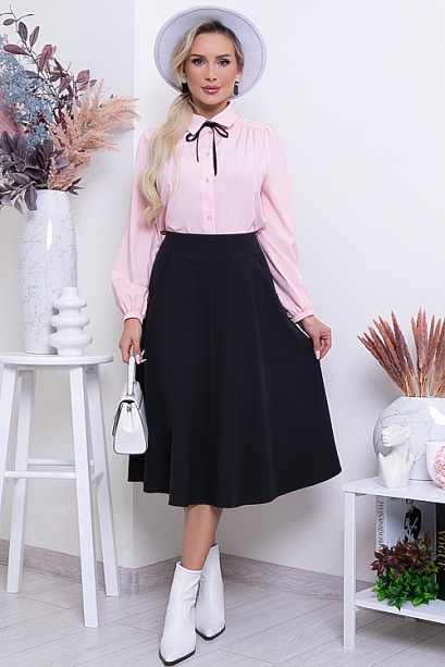 Юбка расклешенная из костюмной ткани. По переду фигурная кокетка,в боковых швах карманы с клапаном и декоративной пуговицей.По среднему шву спинки молния.