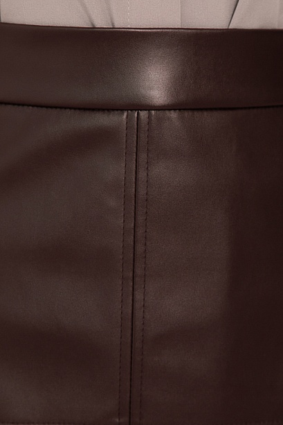 * Юбка трапецевидного силуэта из эко кожи с притачным поясом и застежка молния по спинке.
