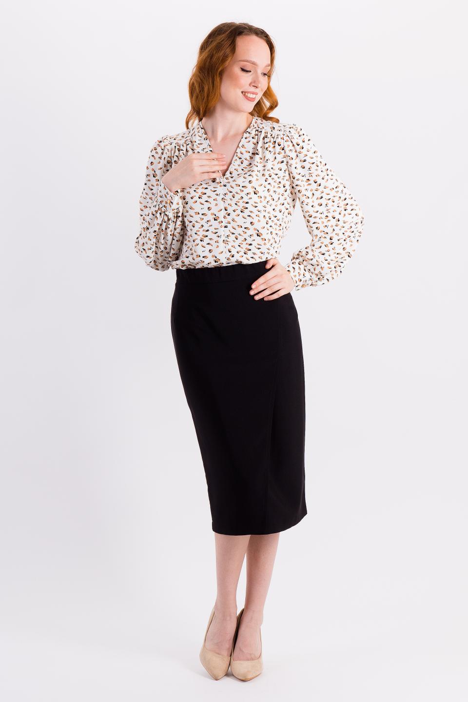 Описание: Юбка-карандаш из костюмной ткани соблазнительно обтягивает Ваши бедра, зрительно удлиняя ножки! Шлица сзади дарит комфортную ширину шага, а имитация запаха спереди служит интересным акцентом в модели.