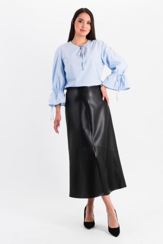 Описание: Базовая прямая юбка благодаря корсажной резинке в поясе очень комфортна в носке. Разрез по низу среднего шва.