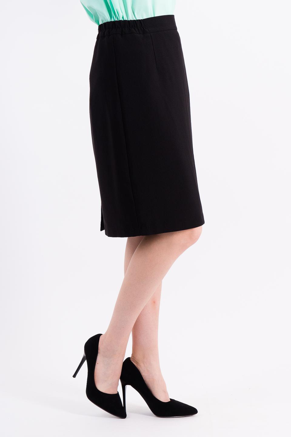 Описание: Юбка прямая с подкладом на притачном поясе. По бокам пояса между вытачек вставлена резинка. Застежка молния, пуговица и шлица в среднем шве. Длина около 60 см
