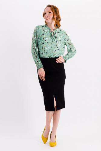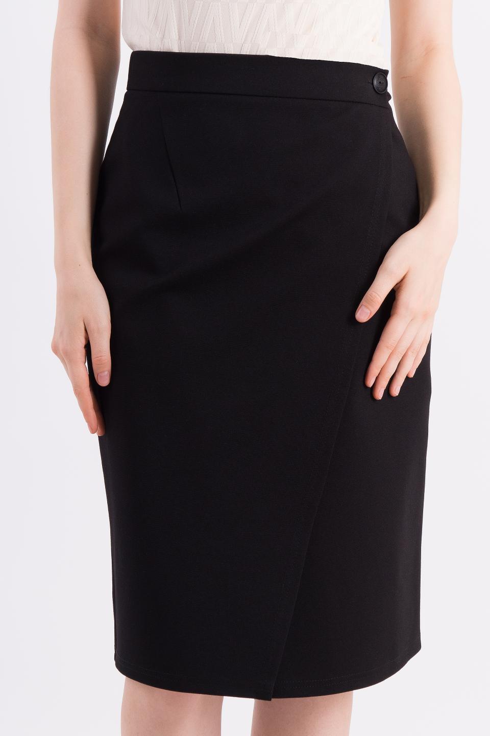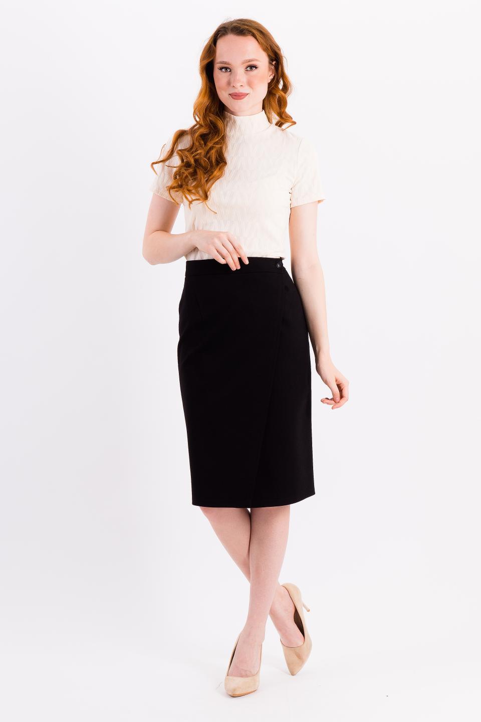 Описание: Трикотажная юбка-карандаш с запахом не стесняет движений, а диагональная линия придает динамичность. Пояс притачной с резинкой внутри задней половинки.