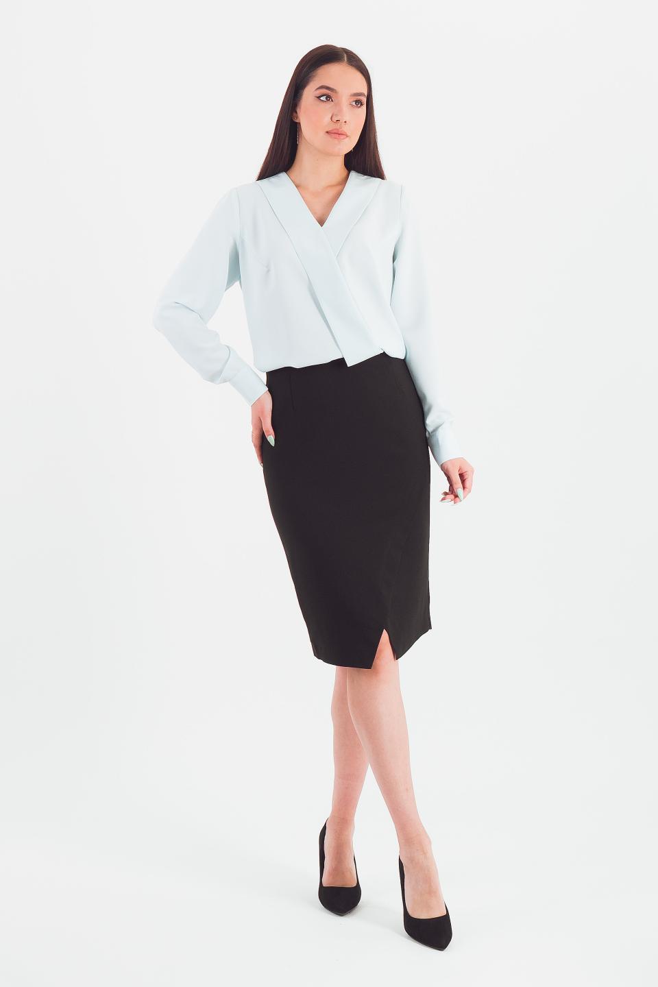 Описание: Лаконичная юбка-карандаш с асимметричными рельефами спереди, имитирующими глубокие складки, что зрительно вытягивает Ваши ножки. Корсажная резинка внутри талии обеспечит комфортную посадку.