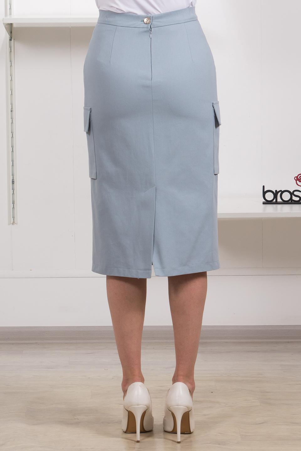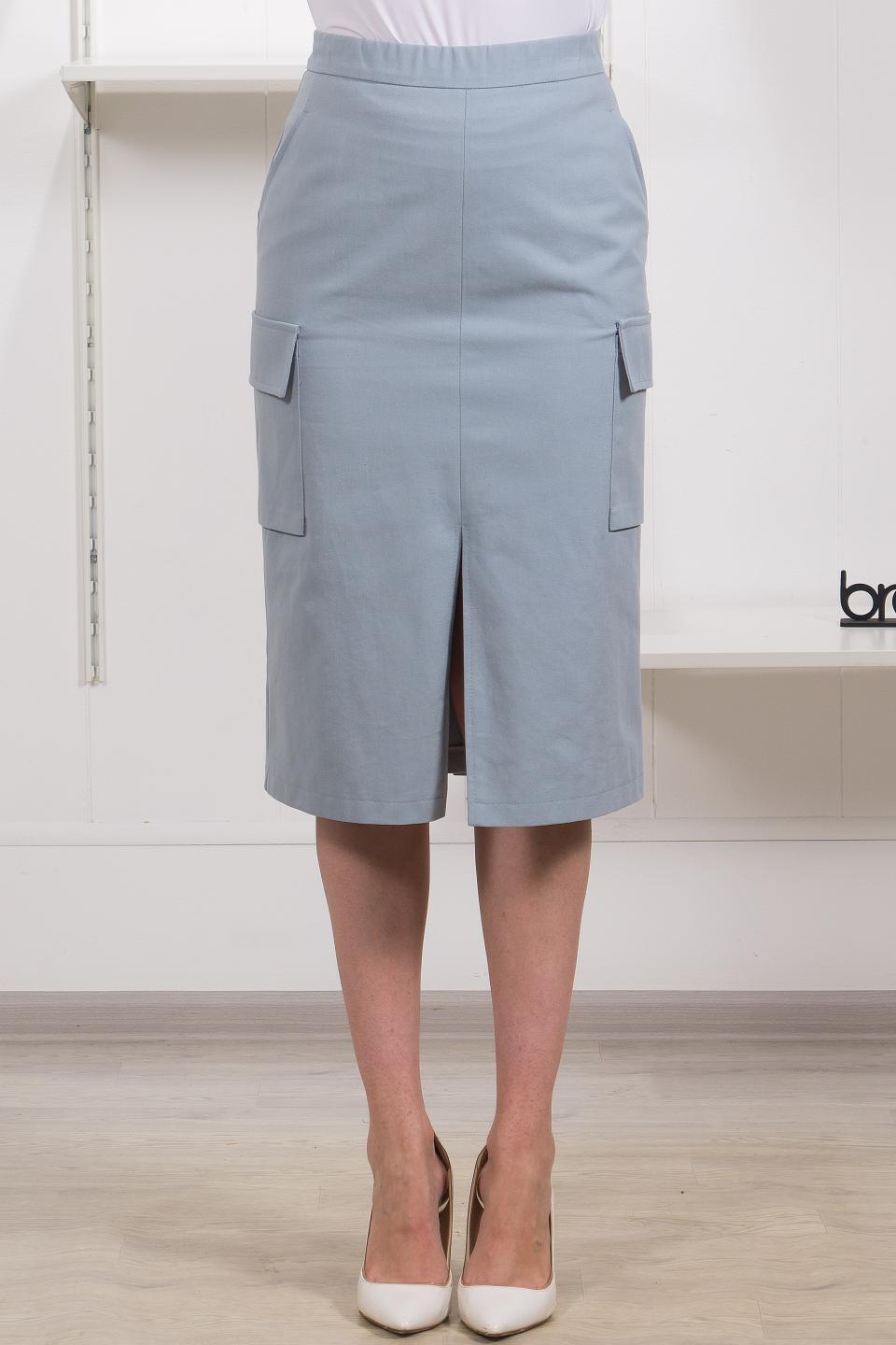 Описание: Юбка-карго на вершине модных тенденций! Прямой силуэт, застежка-молния с резинкой в поясе, разрез спереди и шлица сзади дарят комфорт. Карманы на любой вкус- и в отрезном бочке, и накладные с клапаном.