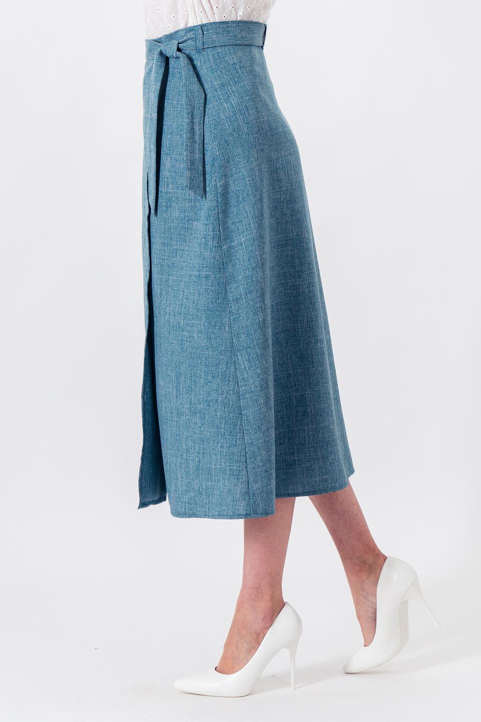 Описание: Универсальная модель юбки для любой фигуры! Глубокий запАх обеспечивает комфортную ширину шага и излишне не раскрывет Ваши ножки. Пояс, проходящий через прорезь и закрепленный шлевками, позволит Вам выбрать нужный объем, поэтому юбка не будет зависеть от изменения параметров фигуры.