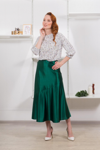 Описание: Нарядная юбка из плотного шелковистого материала струится вокруг фигуры, зрительно вытягивая силуэт и создавая роматнический образ.