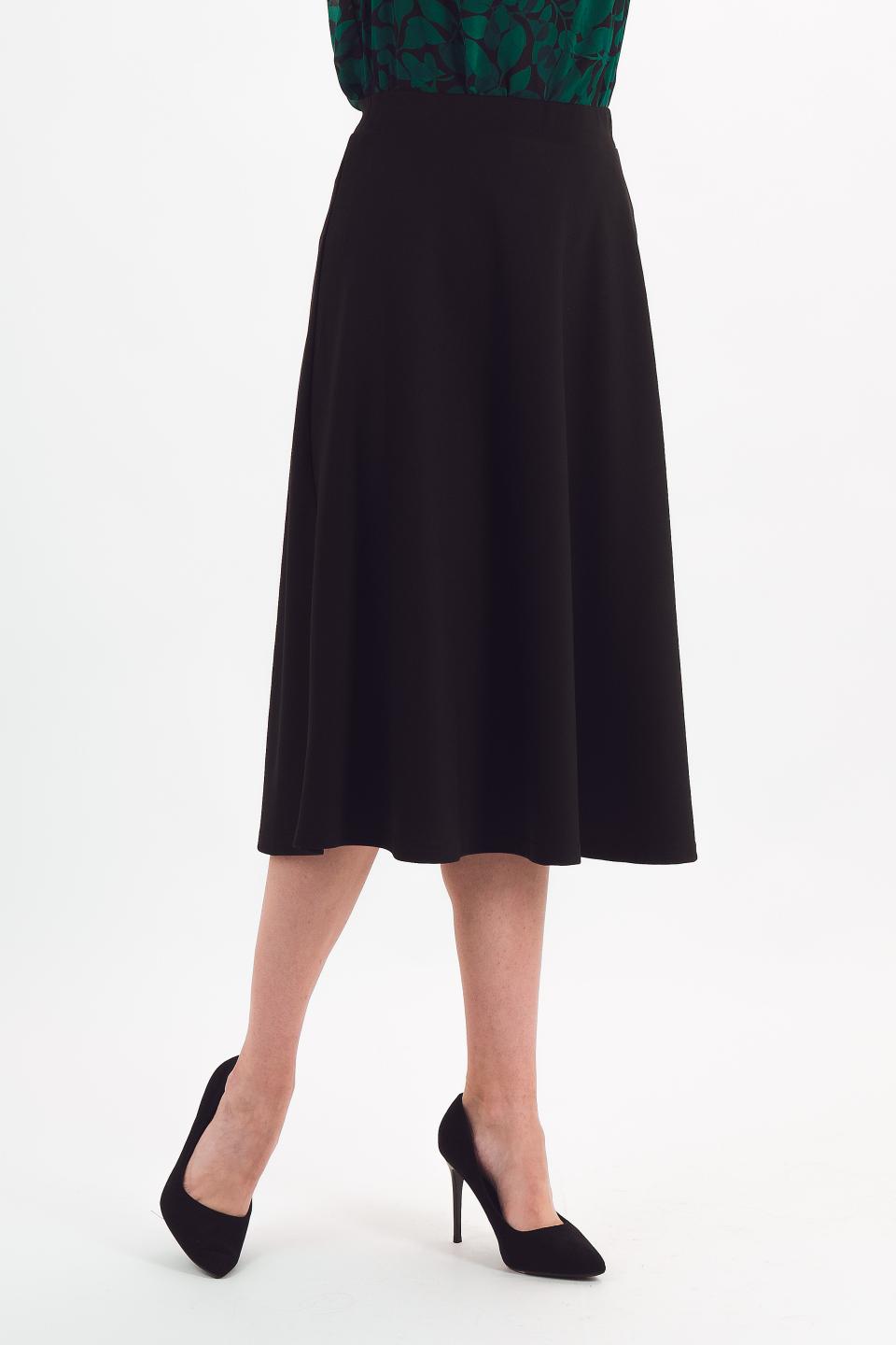 Описание: Универсальная модель трикотажной юбки-колокол с резинкой в поясе. Итальянская длина зрительно вытягивает силуэт, а мягкий трикотаж дарит комфорт движений.