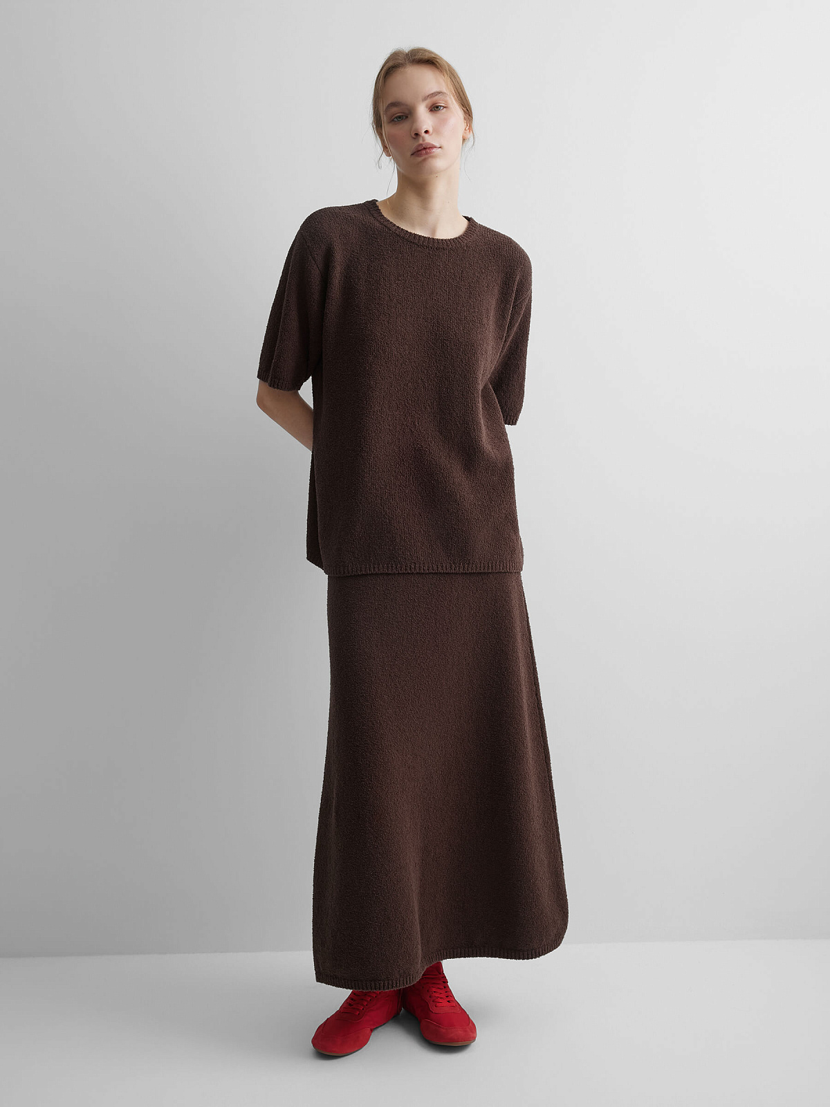 Юбка А-образного силуэта из хлопка букле, коричневый