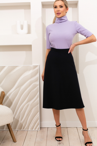 Стильная расклешенная юбка. Верх дополнен втачным поясом. Застежка на пуговицу и потайную молнию расположена в боковом шве. Подол прямой, без разрезов. Благодаря своему крою, юбка прекрасно скрывает недостатки в области бедер.