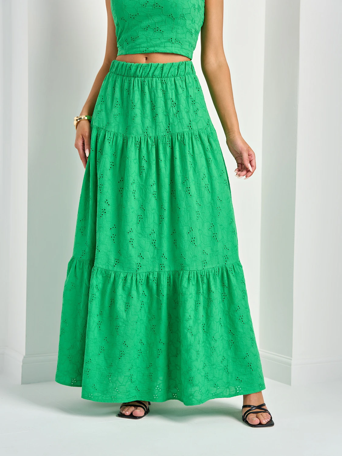 Ярусная юбка длины макси с подкладом.