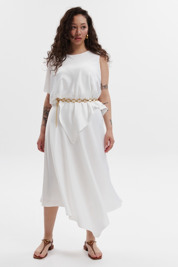 Юбка трапециевидного силуэта на подкладе асимметричного кроя.