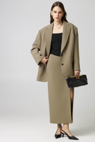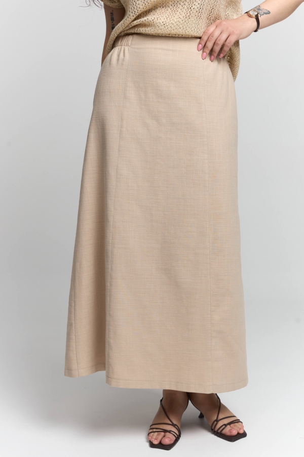 Юбка макси А-силуэта из благородного фактурного хлопка с разрезом сзади, с рельефами по переду и спинке, застежка на молнию.