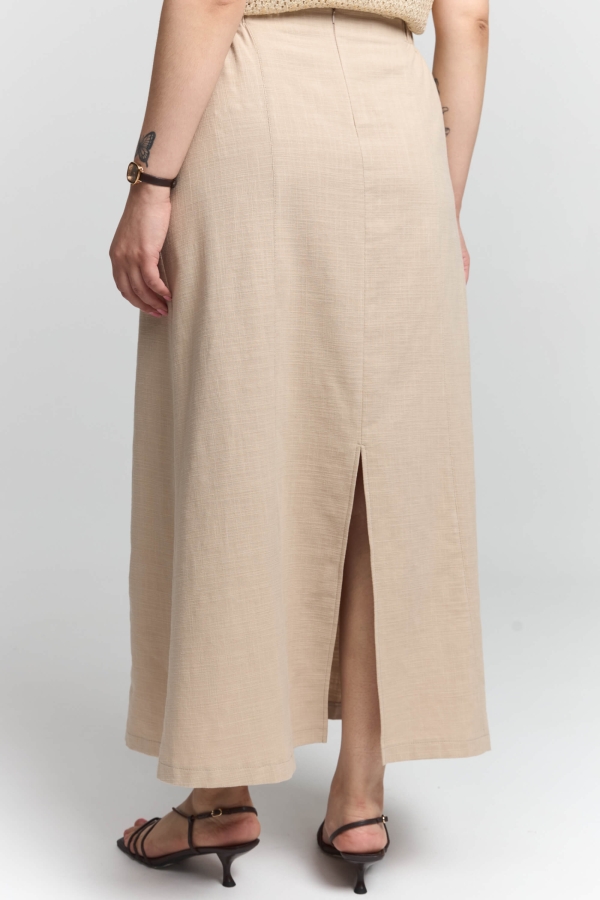 Юбка макси А-силуэта из благородного фактурного хлопка с разрезом сзади, с рельефами по переду и спинке, застежка на молнию.