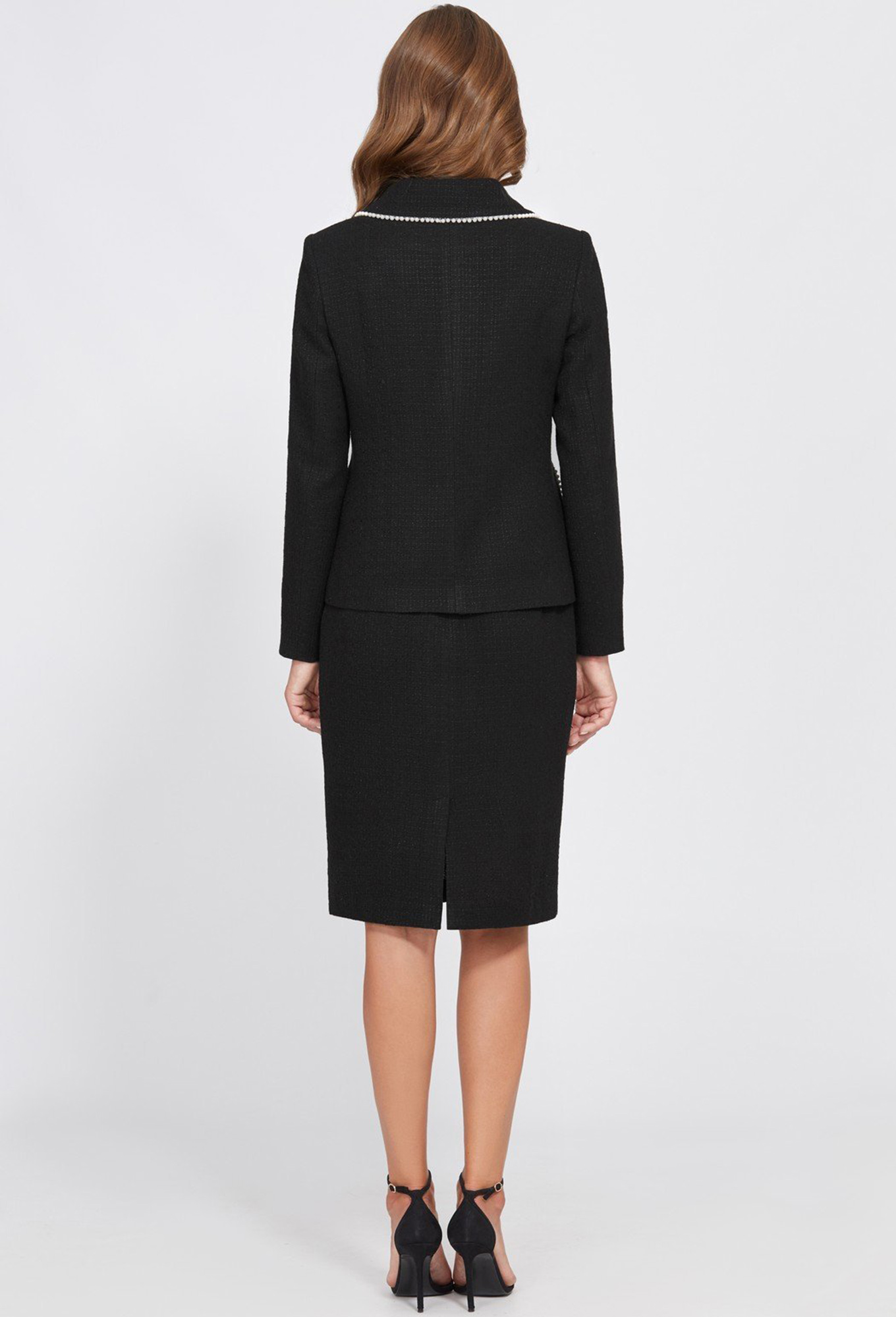 Модель: Базалини 4756 черный Рост..показать: 170 см (девушка на фото 170см) Сезон: Круглогодичный Тип ткани: Полиэстер 65%, Вискоза 30%, Акрил 5%Элегантная юбка-карандаш на обтачке правильной длины, до середины колена. Для пошива модели использовали красивую мягкую ткань в стиле шанель. В среднем шве задней половинки обработаны застёжка на потайную молнию и шлица. На подкладке.: 170 см (девушка на фото 170см)