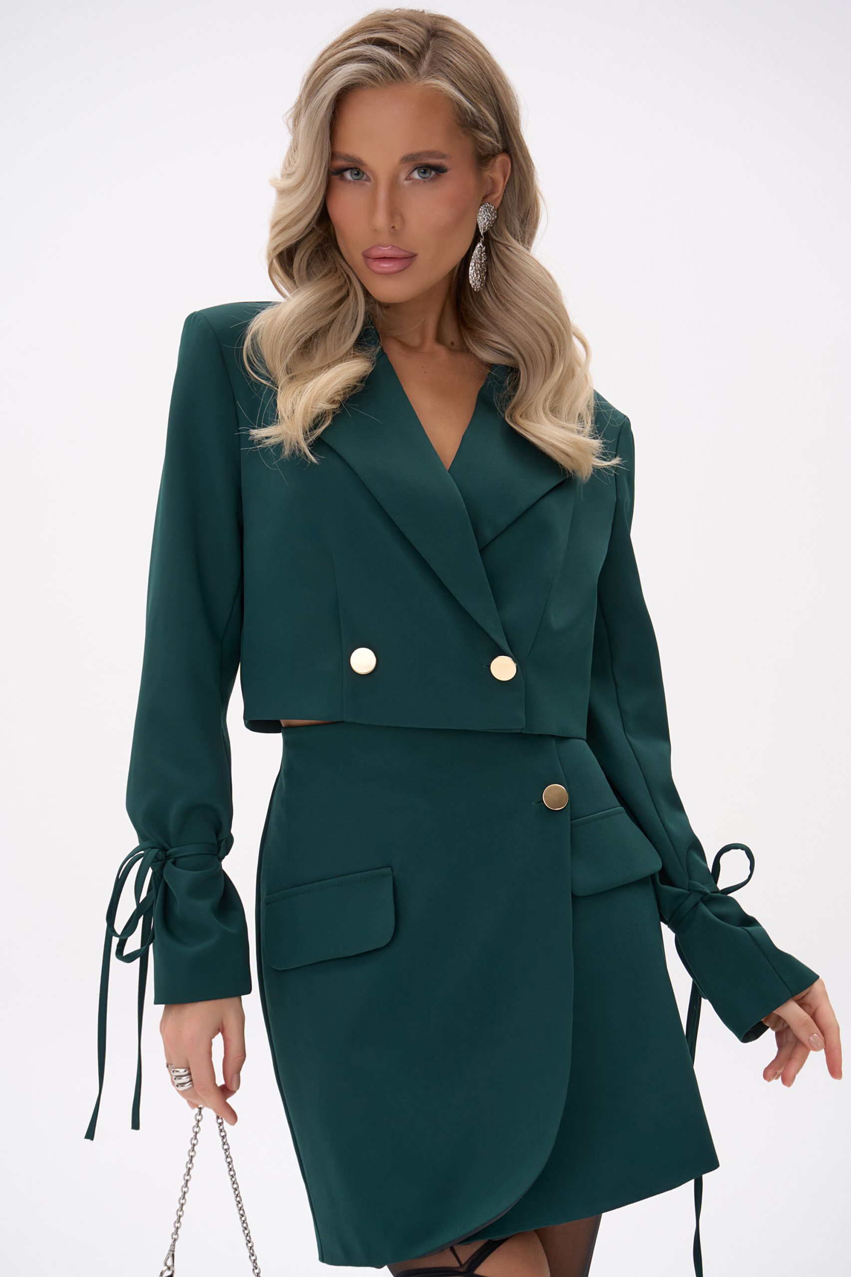 Элегантный костюм с архитектурным кроем — современная интерпретация женственной классики. Модель сочетает четкие линии жакета и мягкую посадку юбки, создавая вытянутый силуэт и аккуратную посадку по фигуре. Костюм выглядит статусно, но при этом остаётся комфортным в течение всего дня — подходит как для офиса, мероприятий и ужинов, так и для стильных повседневных образов.