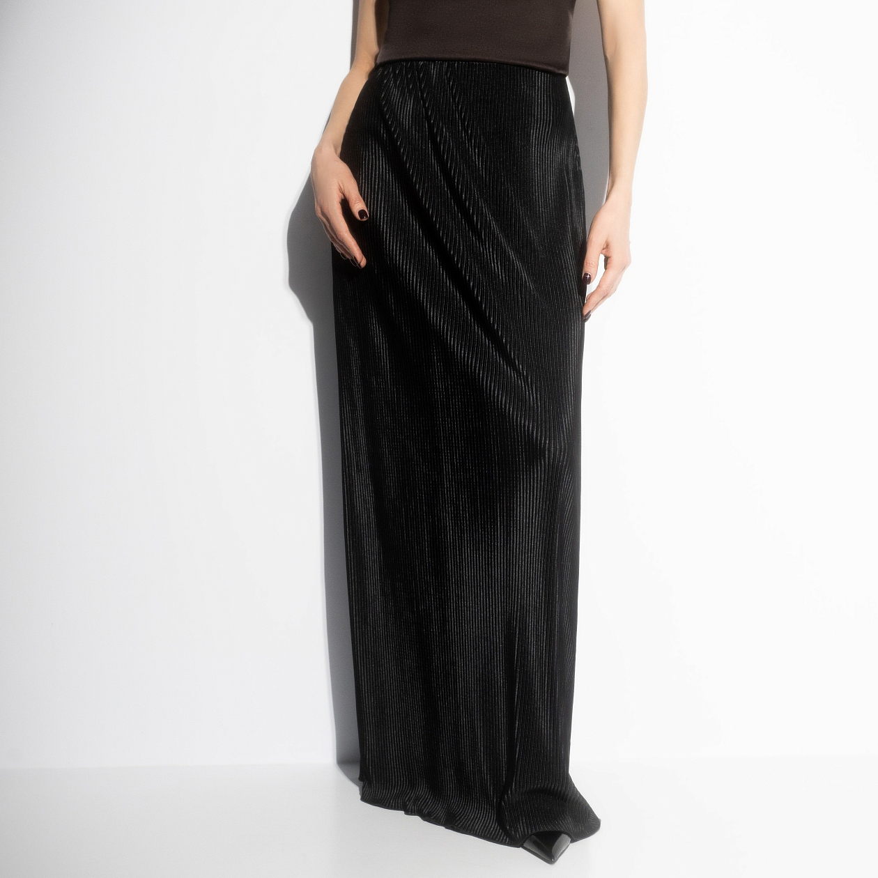В этот вечер ты почувствуешь себя настоящей богиней. Будто Гера из греческих мифов, ты будешь излучать уверенность и роскошь. Позволь себе быть мировой звездой вместе с ЧАРУТТИ! А пока ты только представляла себе эту картинку, поверь, уже разбила немало сердец. Длинная юбка из трикотажа гофре со струящейся фактурой и посадкой на талии. Ткань красиво драпируется, создавая ощущение женственной динамики. Выбирай эту юбку для особых случаев. Юбка в длине макси, пояс на скрытой резинке, без застёжек.