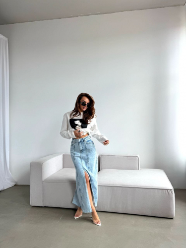 Шикар..показатьная джинсовая юбки с идеальной посадкой!ная джинсовая юбки с идеальной посадкой!