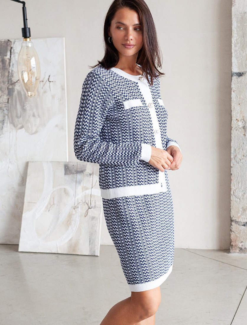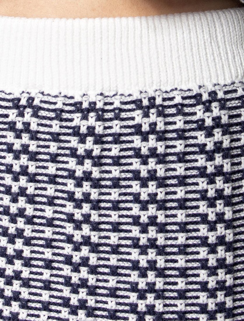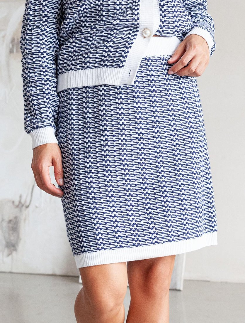 Юбка фактурной вязки выполнена из мягкой хлопковой пряжи с добавлением акрила. Изделие дополнено трикотажной подкладкой, в поясе вставлена эластичная резинка, что гарантирует абсолютный комфорт при носке.