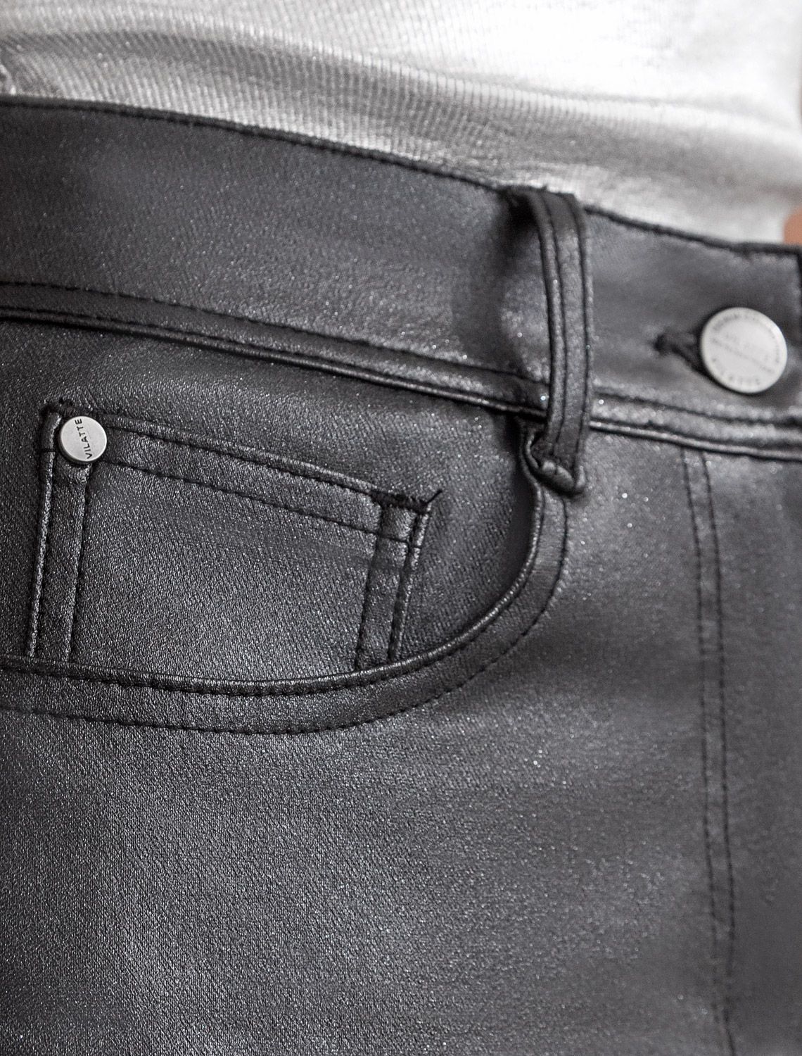 Пышная юбка-полусолнце кроеная по косой выполнена из эластичного хлопка с металлизированным покрытием под кожу. Изделие дополнено кокеткой и пятью карманами как у джинсов. Материал отталкивает влагу и за счет большого содержания хлопка, изделие поддерживает оптимальный микроклимат. Внутренняя тканевая сторона мягкая и очень комфортная к телу. Трендовая модель с мягким сияющим эффектом будет сочетаться с любым верхом и впишется не только в праздничный образ, но и в повседневный гардероб.