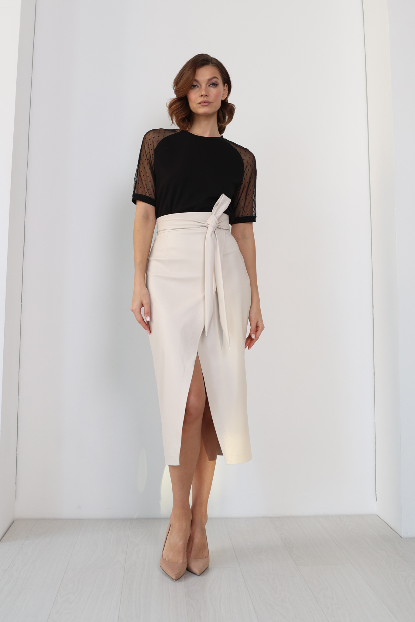 Юбка из экокожи с поясом