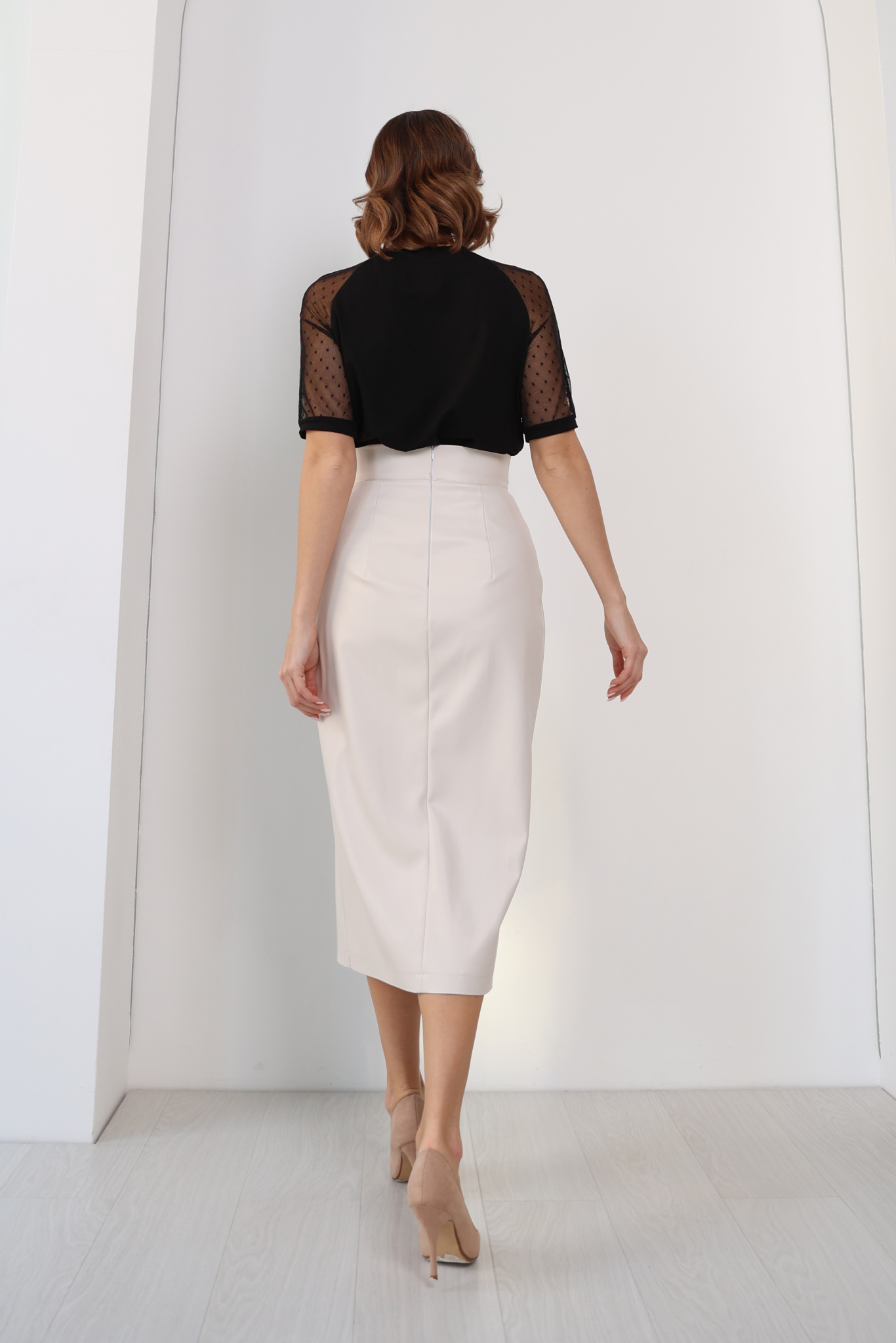 Параметры модели: 175 см, грудь 88 см, талия 64 см, бедра 96 см.
