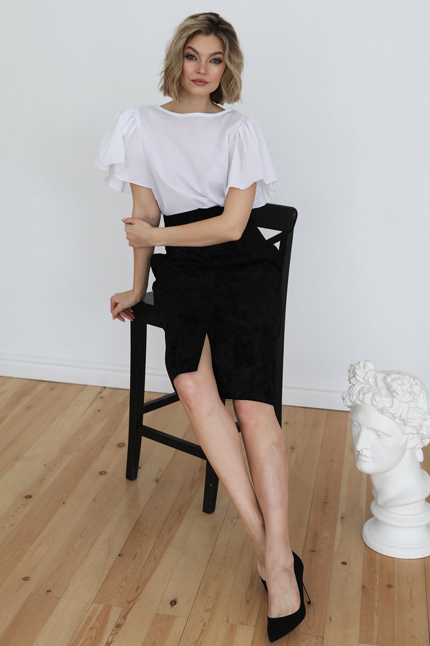 Юбка из вельвета с разрезом по переду