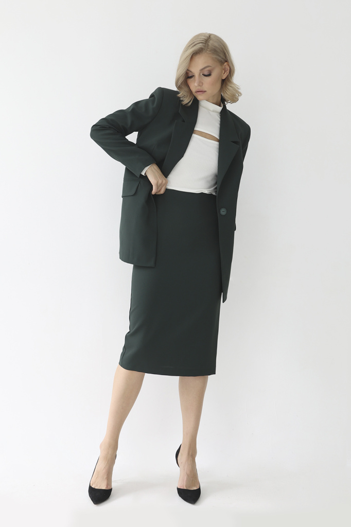 Юбка-карандаш со шлицей из костюмной ткани на подкладке. Потайная молния в среднем шве спинки