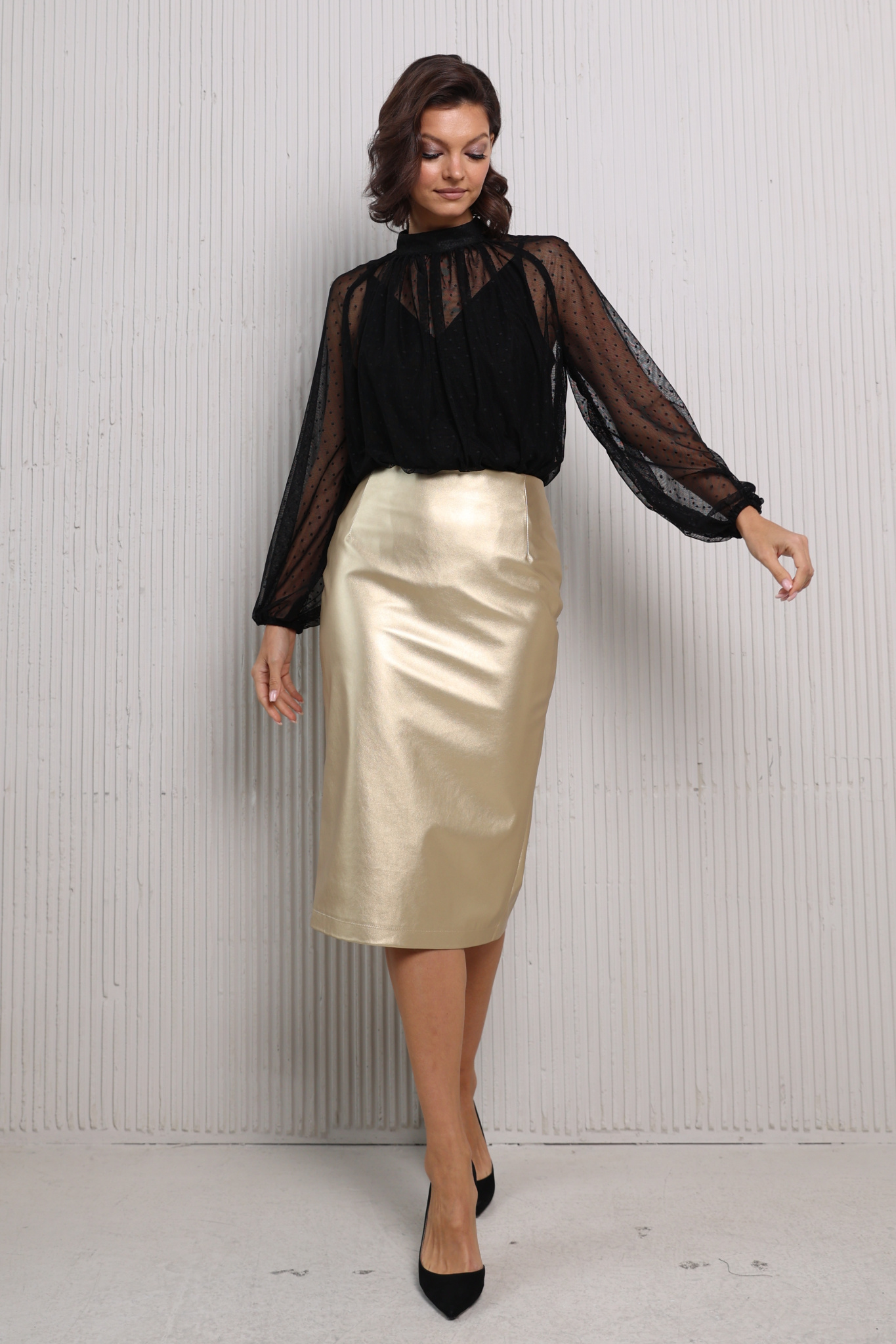 Юбка-карандаш со шлицей. Изделие выполнено на подкладке. Потайная молния в среднем шве спинки.