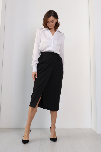 Юбка-карандаш со шлицей. Изделие выполнено на подкладке. Потайная молния в среднем шве спинки.