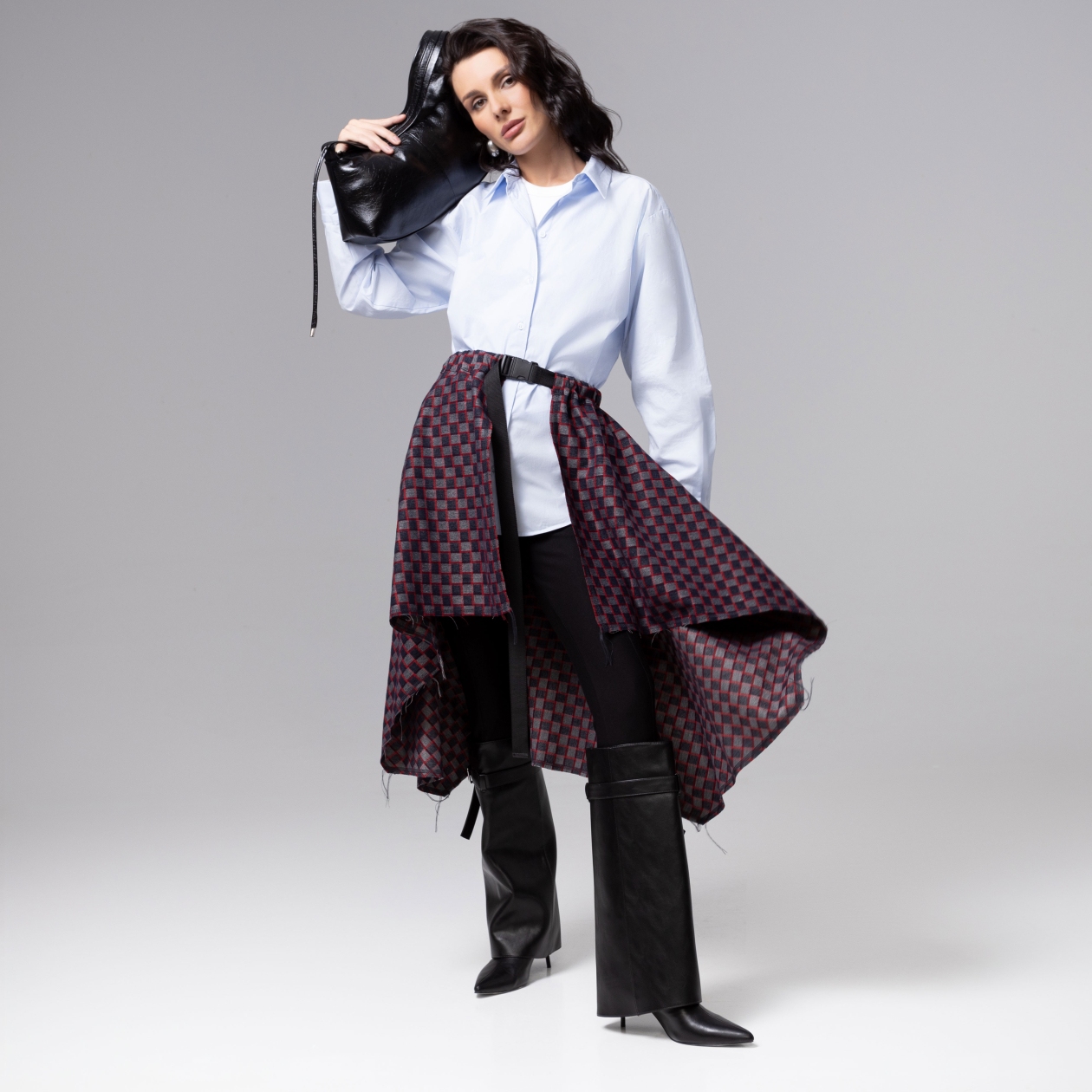 Юбка-килт ЧАРУТТИ из премиальной коллекции – смелый эксперимент с формой и асимметрией. Легко сочетается с брюками, дарит силуэту глубину и загадочность. Эта юбка не про скромность. «Игра теней» ломает привычные пропорции и создаёт графику прямо на вашем образе. Изделие для тех, кто не боится выйти за рамки. Регулируемый пояс позволяет идеально подогнать силуэт под индивидуальные параметры, подчеркивая талию.