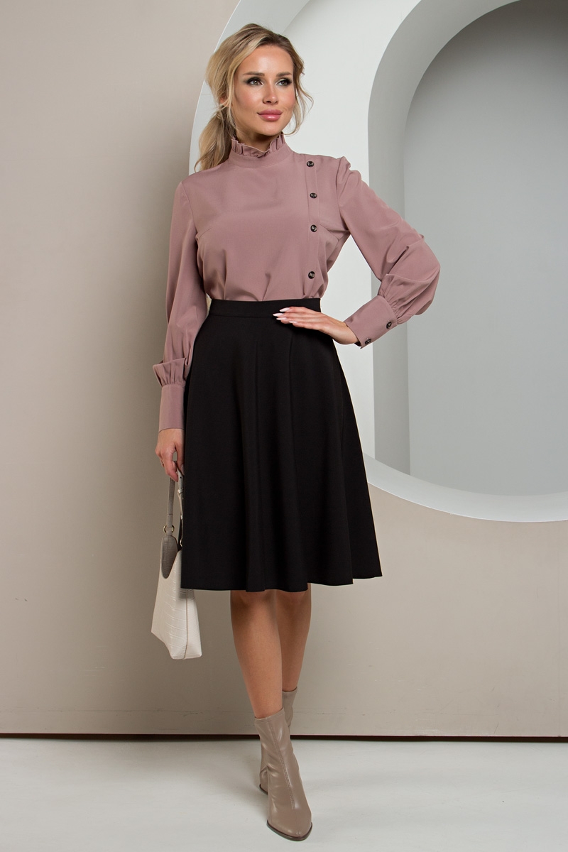 Классическая юбка  полусолнце из однотонного костюмного полотна. Верх оформлен втачным поясом. Застежка на пуговицу и потайную молнию находится в боковом шве. Низ ровный, без разрезов. Модель без подклада.