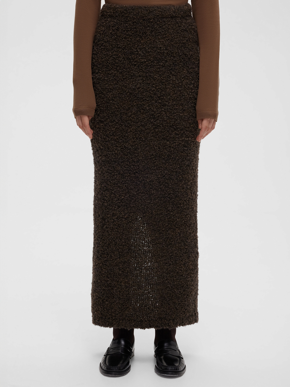 РОЗНИЧНАЯ ЦЕНА 7950руб. Юбка макси с эластичным широким поясом и шлицей по спинке. Изготовлена из фактурной смесовой пряжи с альпакой и шерстью в составе с эффектом букле.