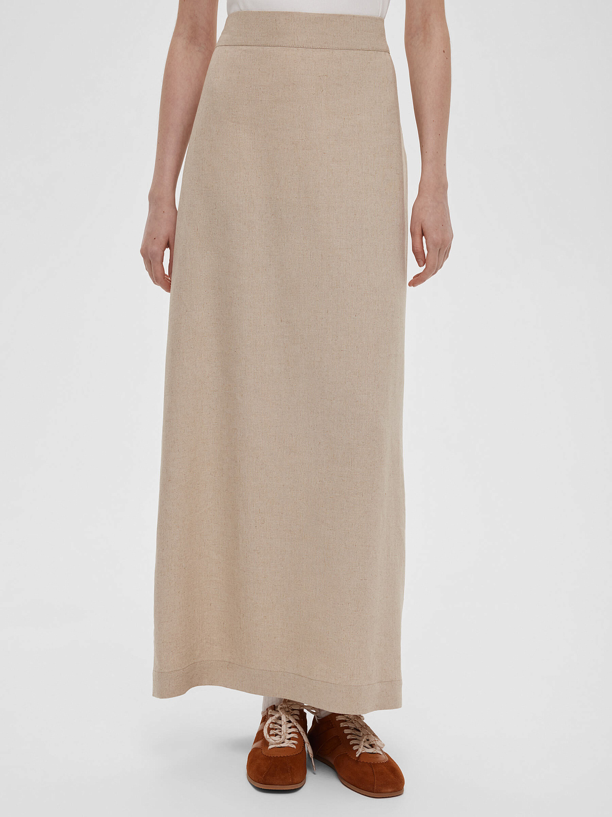Юбка макси из льна 0189, бежевый