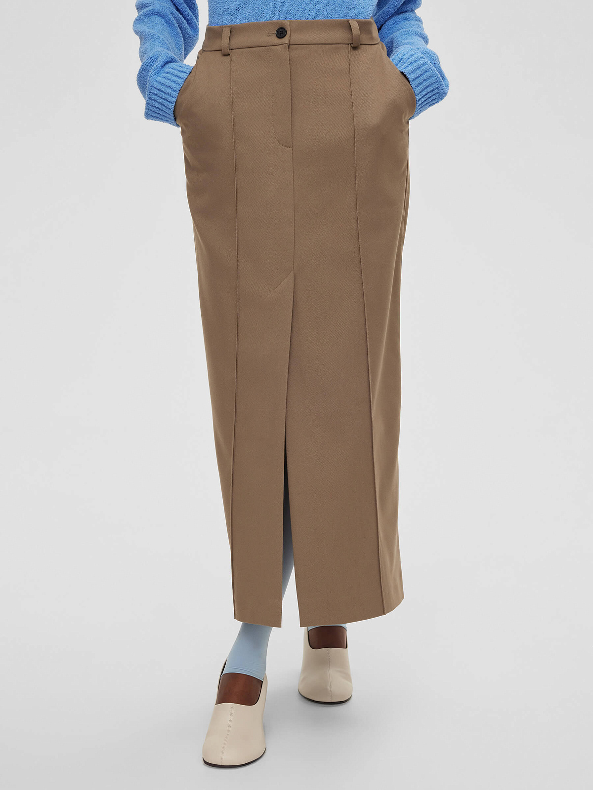 Юбка макси со стрелками, светлый хаки